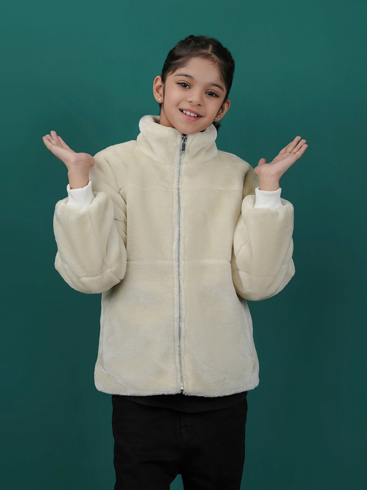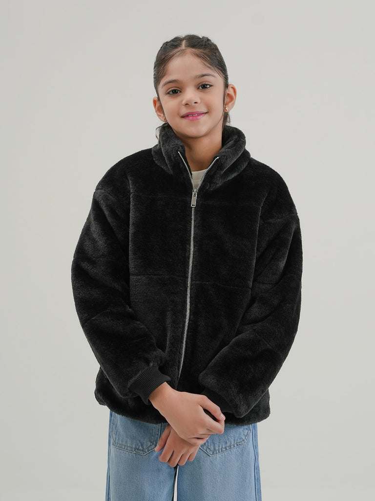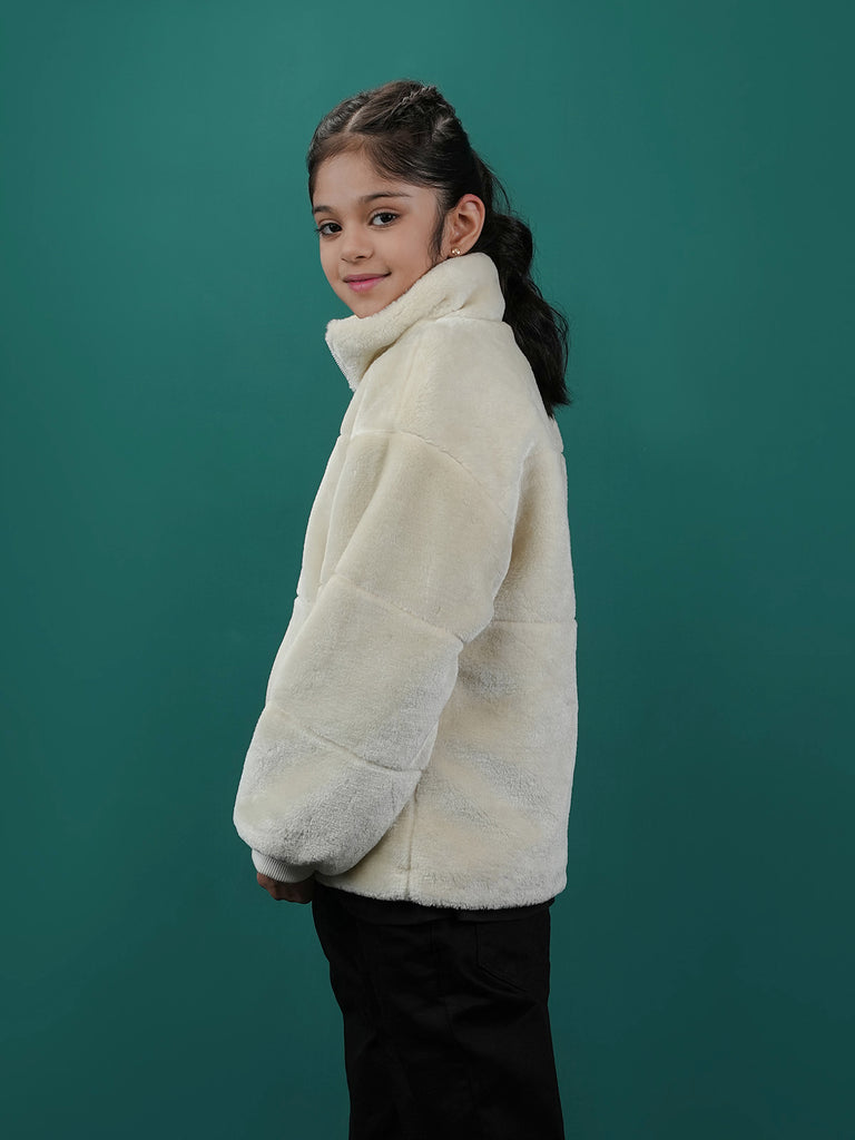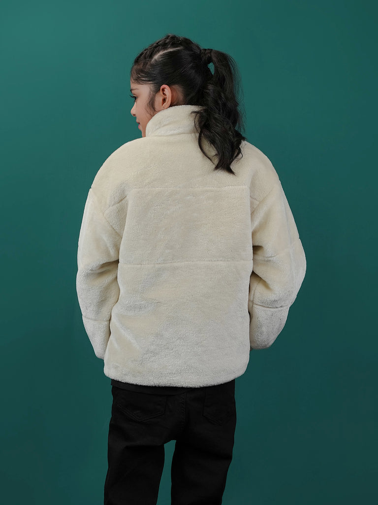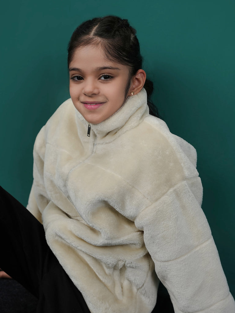 This girls' Bubble Puffer Jacket with Sherpa/Fleece lining is perfect for keeping warm on cold days. Made from 100% polyester, it has a soft and cozy inside and a regular fit for easy movement.