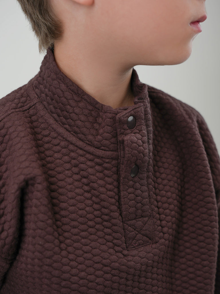 This boys' fleece sweatshirt with drop shoulders is made for cozy comfort and a relaxed look. The soft fabric keeps kids warm, while the loose fit makes it easy to move and play. Perfect for everyday wear, school, or layering on cooler days.