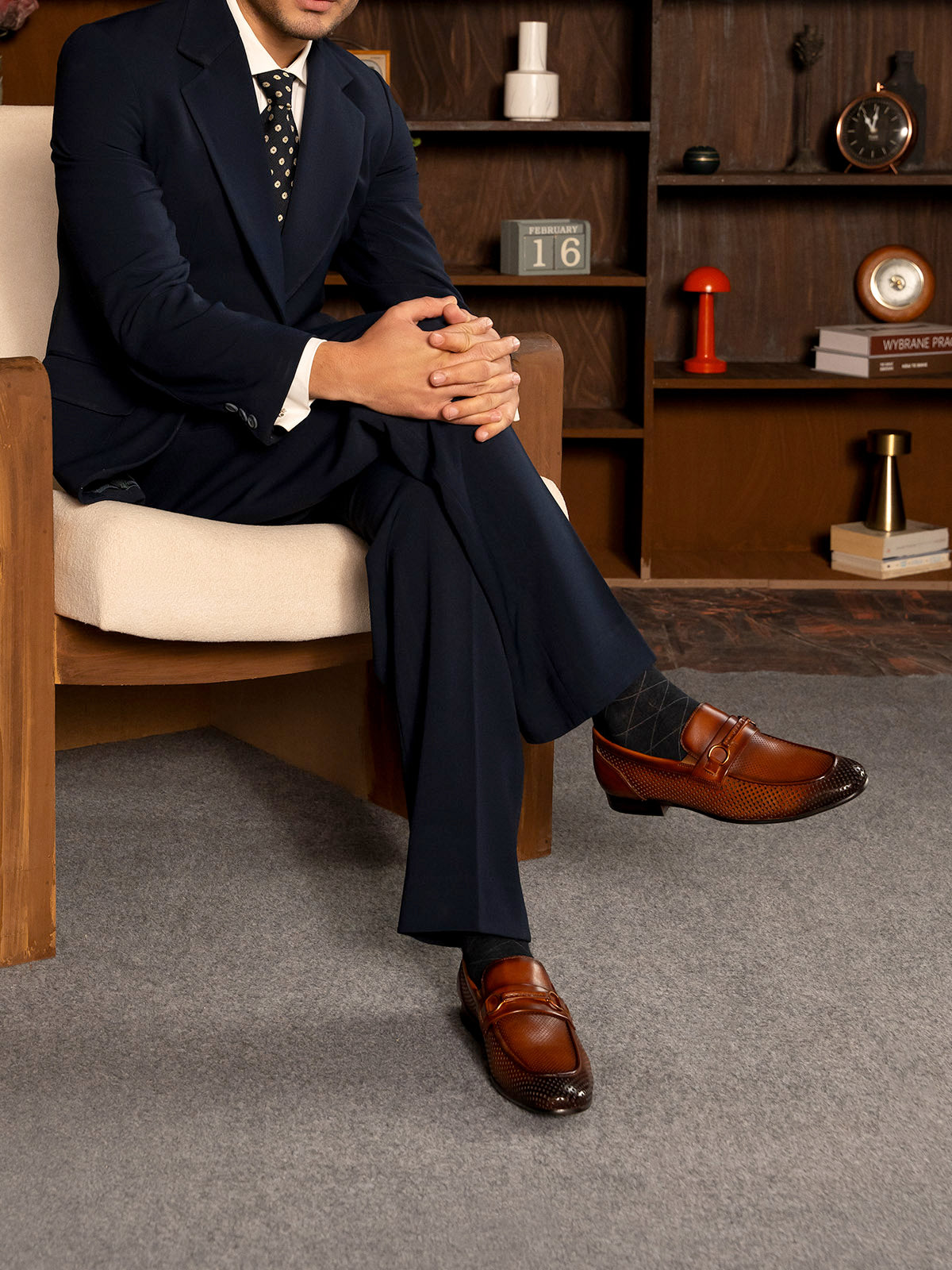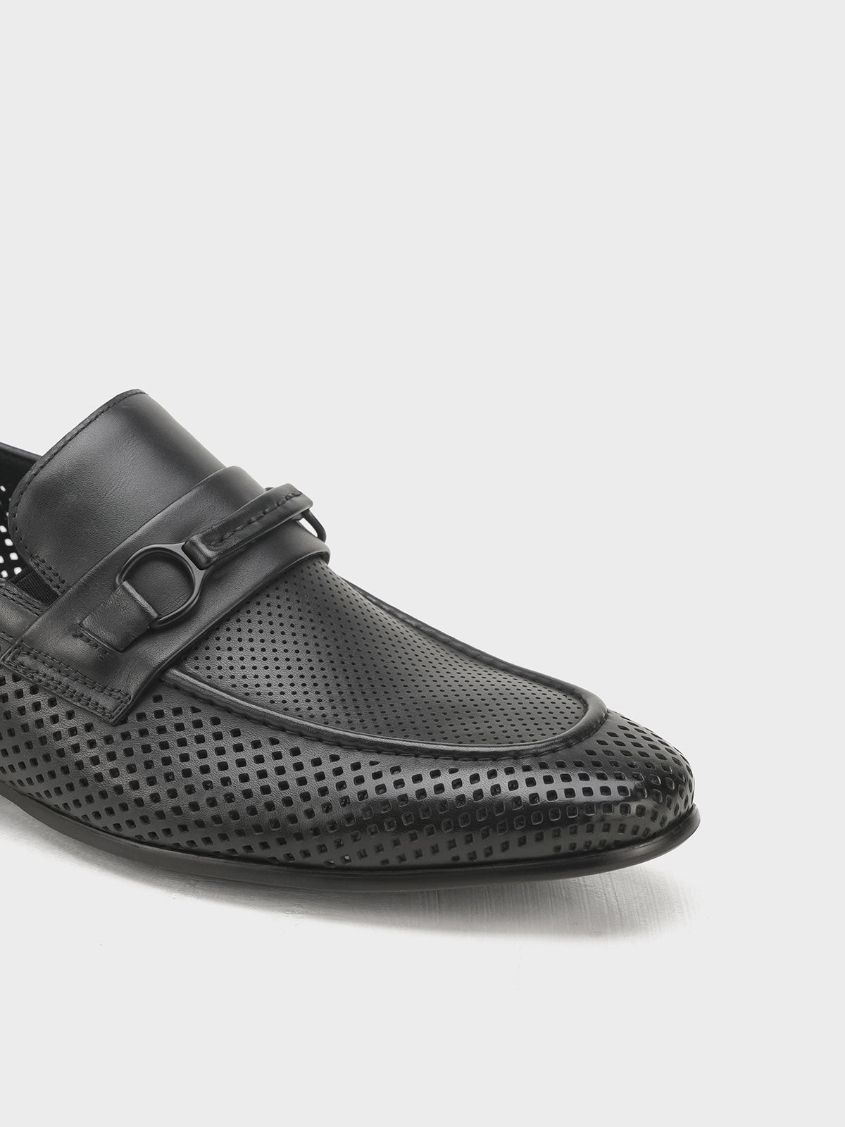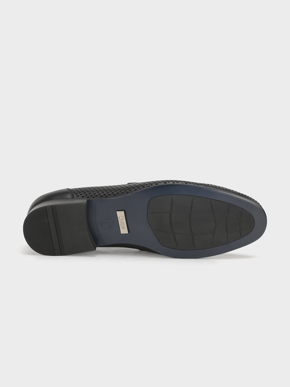 Enhance your formal look with these uniquely styled men’s leather slip-on shoes. Crafted from high-quality leather, they feature a modern design that adds a refined touch to any formal outfit. The slip-on construction offers easy wear.