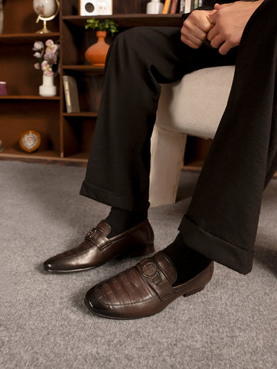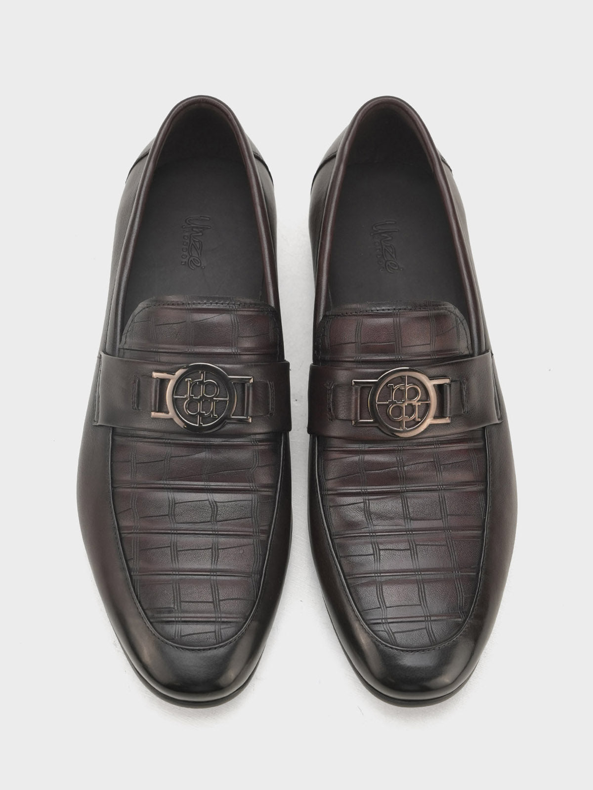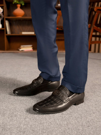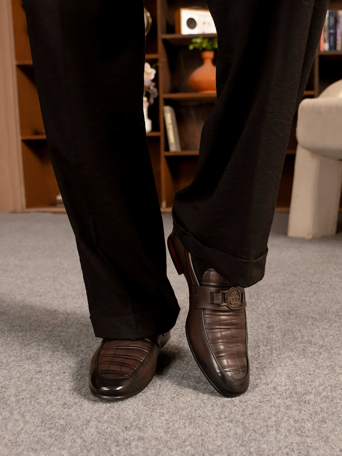 Add a touch of sophistication with these men’s leather front buckle formal shoes. Crafted from premium leather, they feature a sleek front buckle design that elevates your formal look. The cushioned insole ensures all-day comfort, while the durable sole provides stability and long-lasting wear.