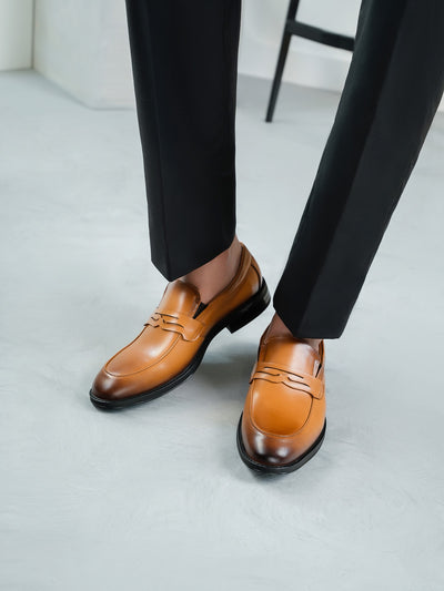 Experience style and ease with these slip-on leather dress shoes, featuring a polished finish, sturdy leather sole, and cushioned PU lining. Ideal for business meetings or elegant evenings out.