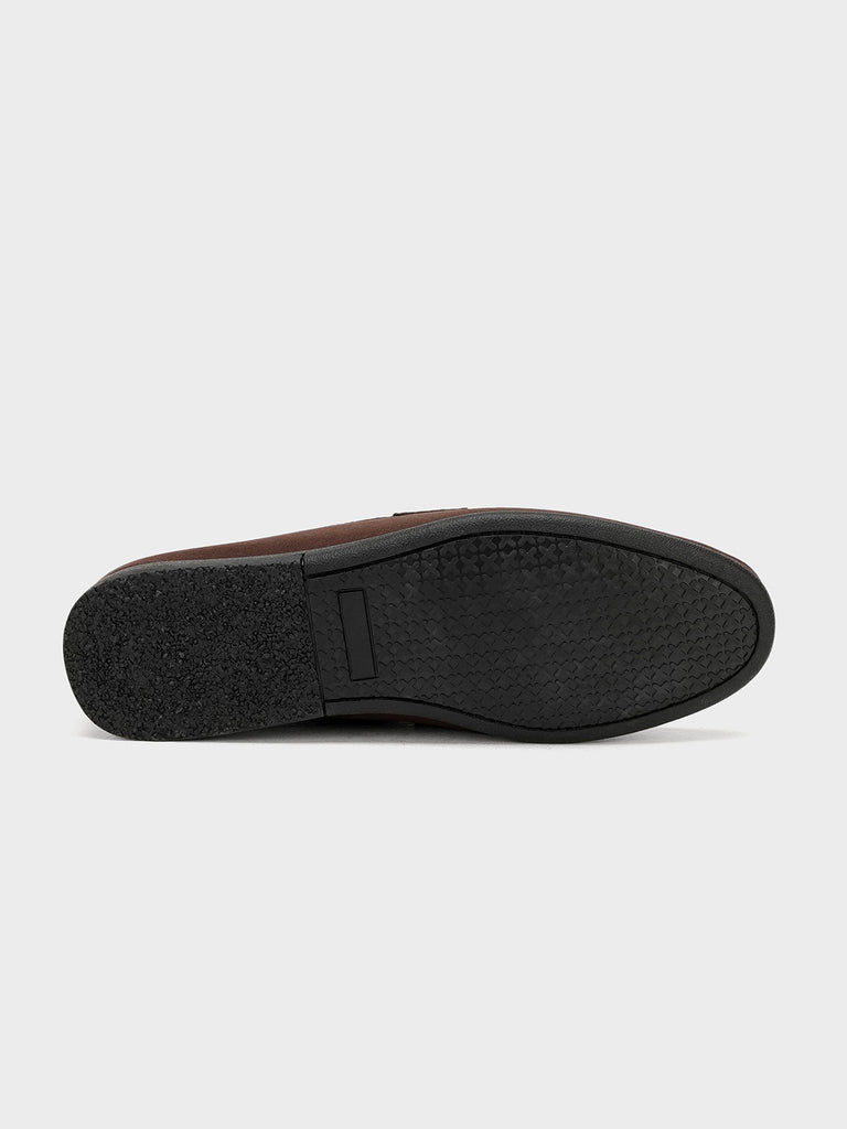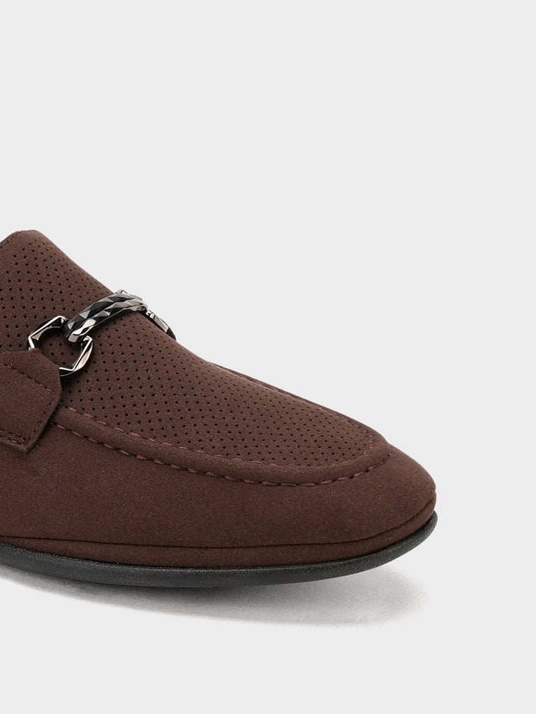Add timeless charm to your look with these men’s loafers featuring a sleek metal buckle detail. Crafted from soft, durable material with a perforated upper for breathability, these loafers offer both comfort and style.