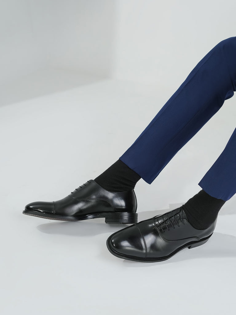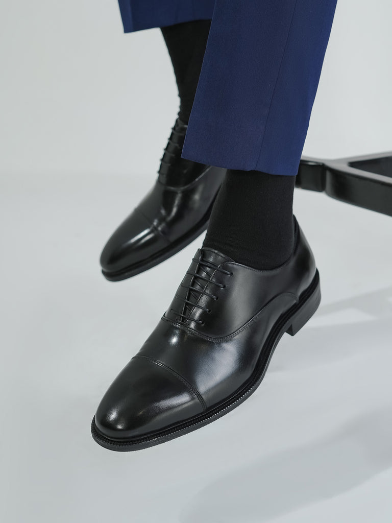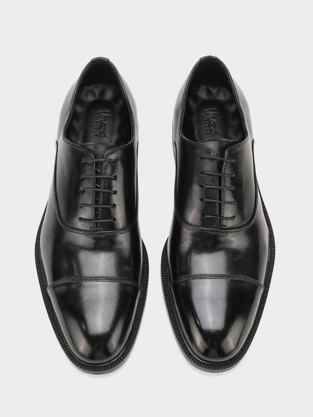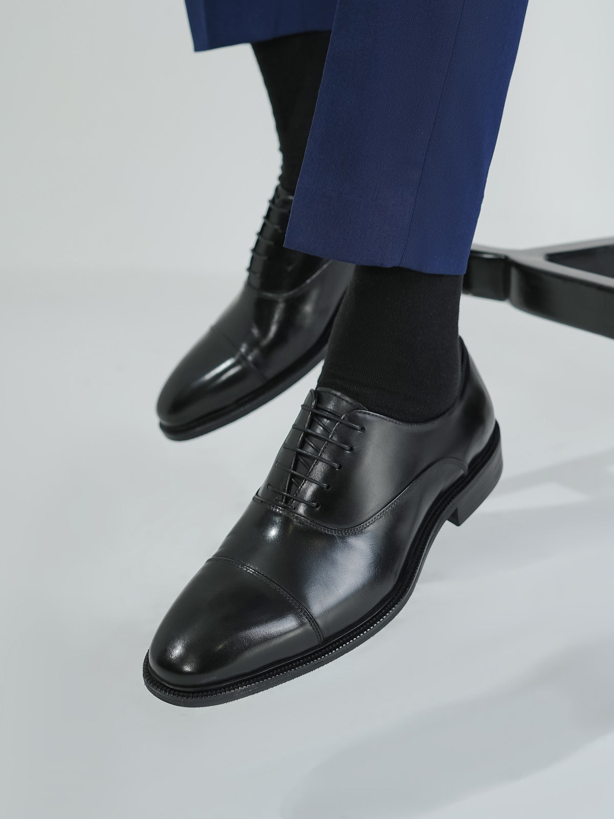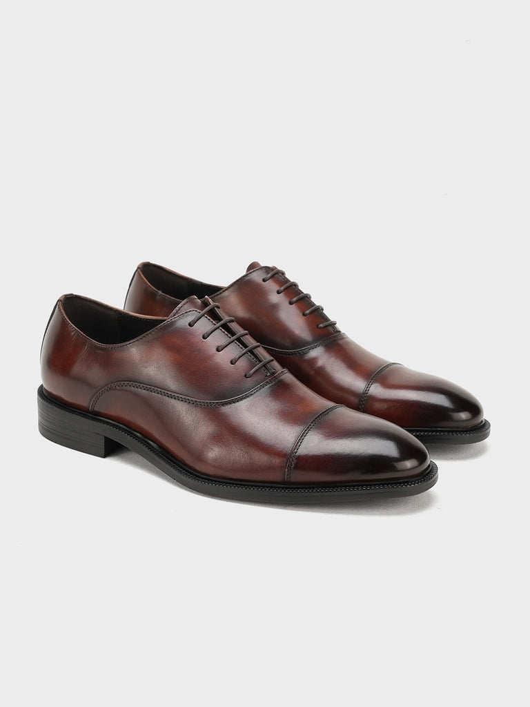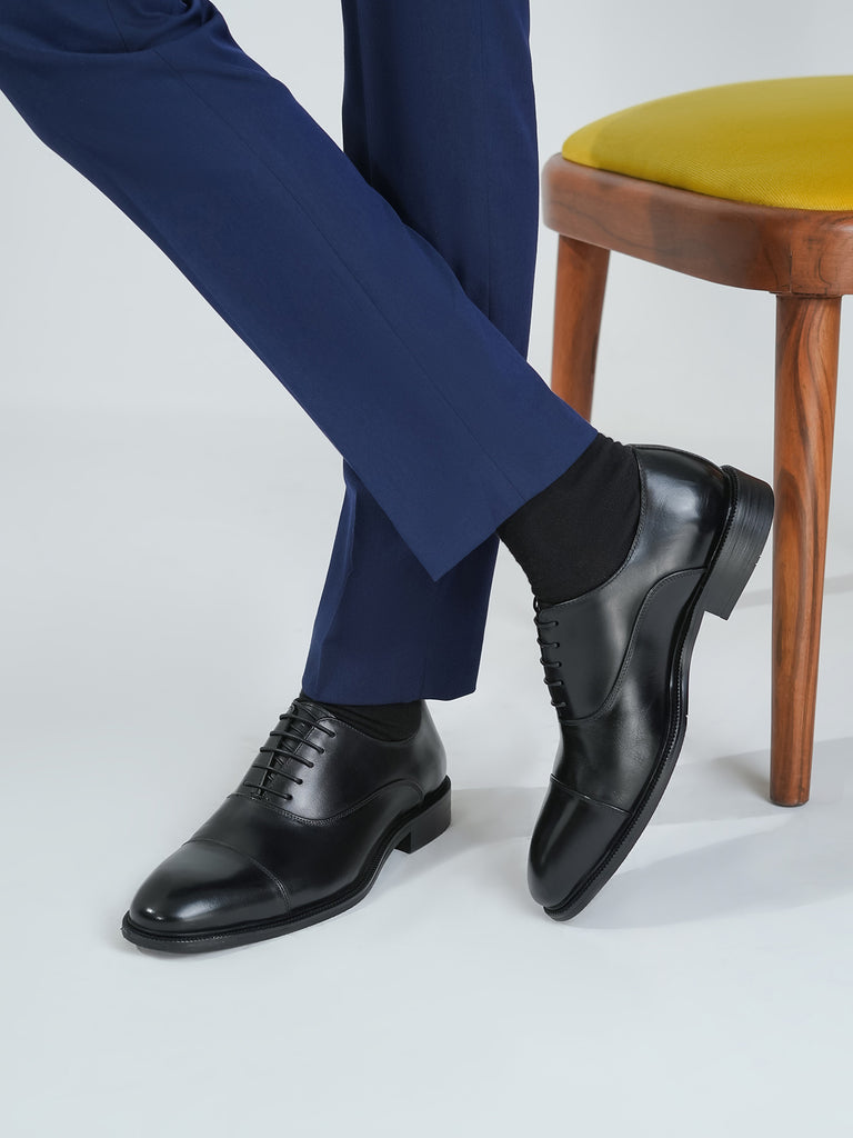 Elevate your formal wardrobe with these stylish leather shoes for men. Made from genuine leather, they feature a smooth finish, sleek silhouette, and classic lace-up style.