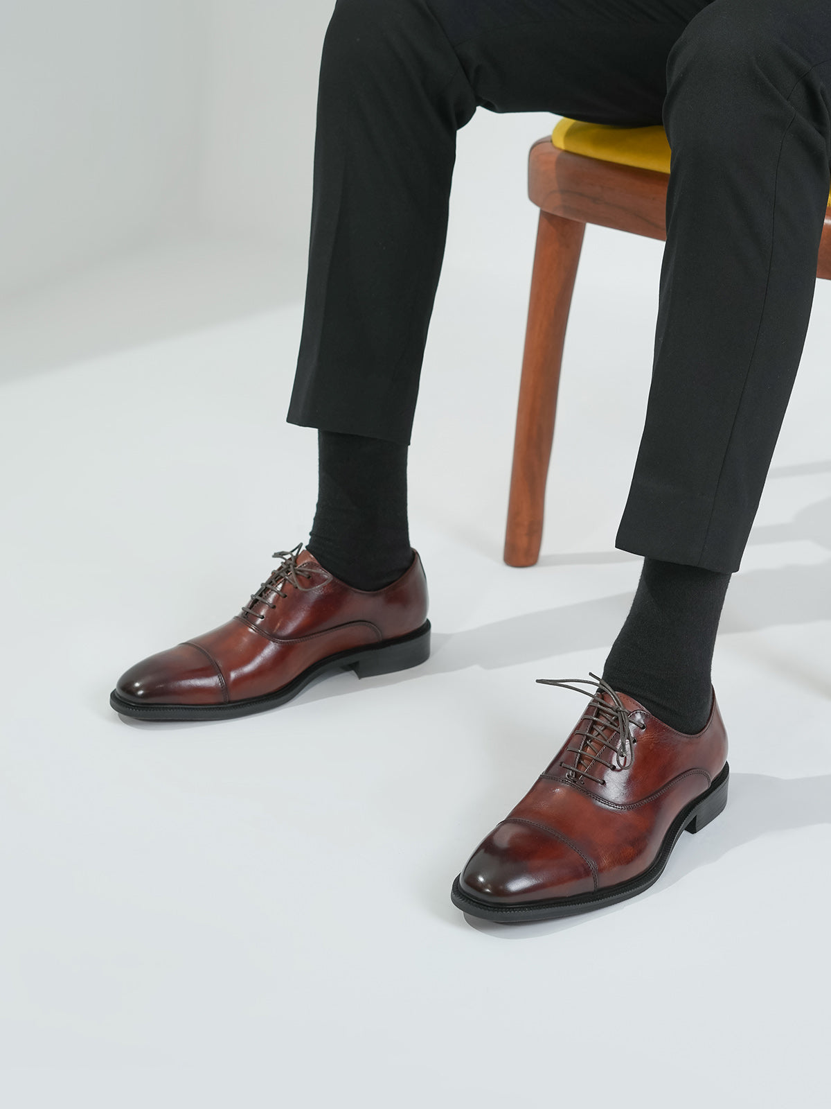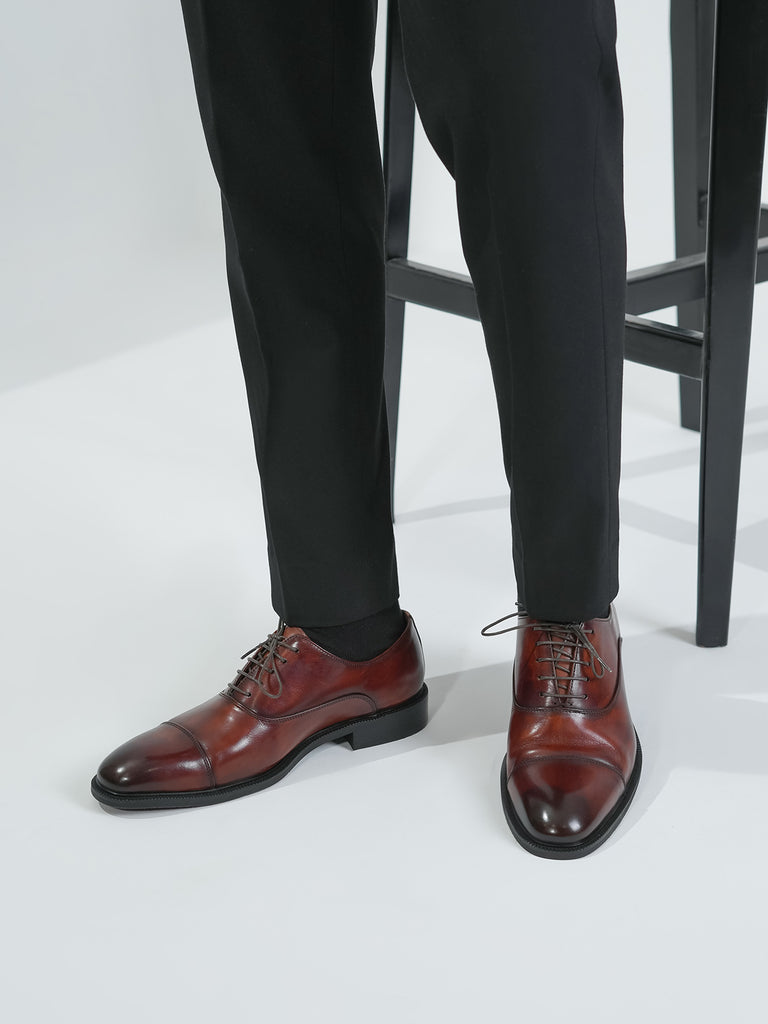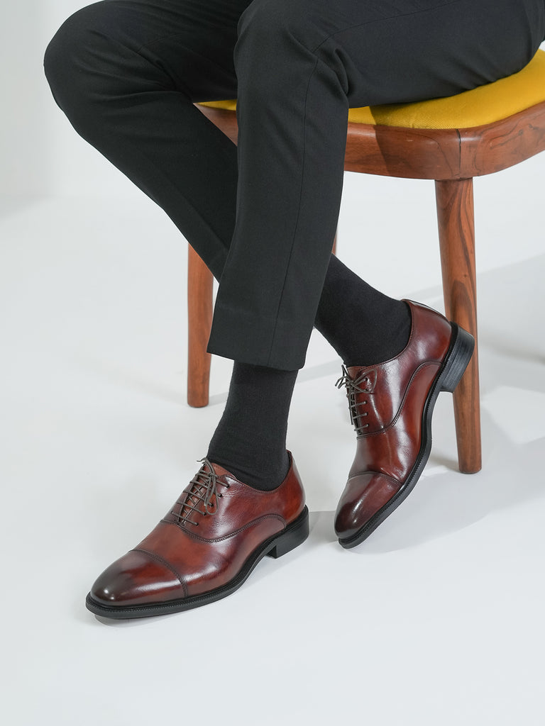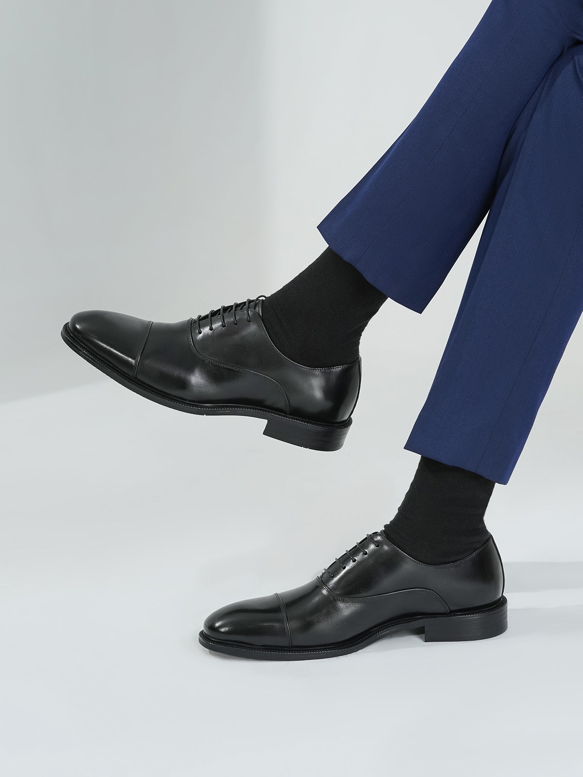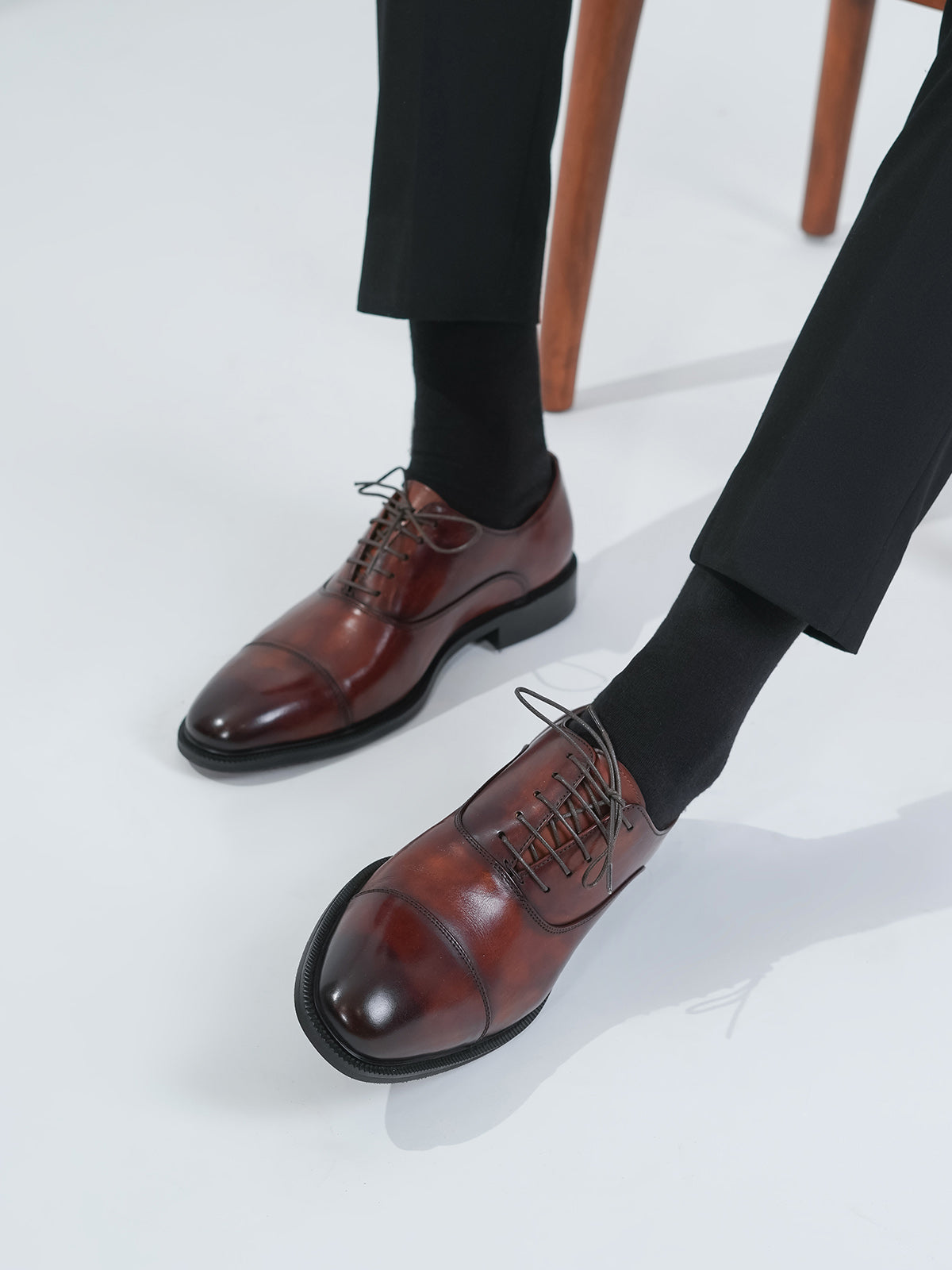 Elevate your formal wardrobe with these stylish leather shoes for men. Made from genuine leather, they feature a smooth finish, sleek silhouette, and classic lace-up style.