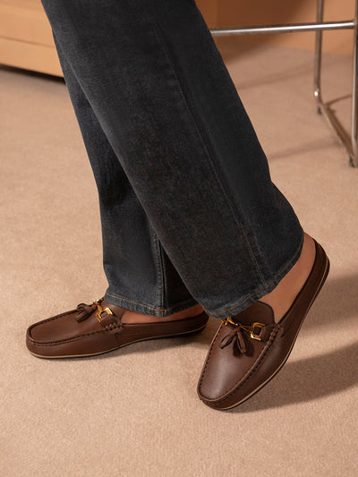 Experience the perfect combination of style and convenience with these men’s backless moccasins. Crafted from high-quality materials, they offer a sleek, modern look while providing easy slip-on wear. The backless design ensures breathability and comfort.