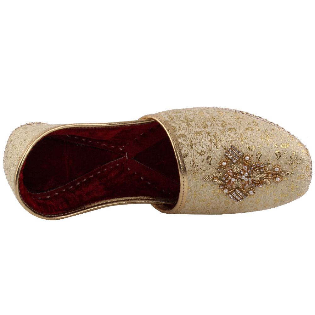 These classy leather Indian khussa is solace and smart. Simple slip on development. High quality and carefully assembled velvet lining shoes have decorated weaved theme on the upper. Inside sewed itemizing demonstrates the craftsmanship of this ethnic piece.