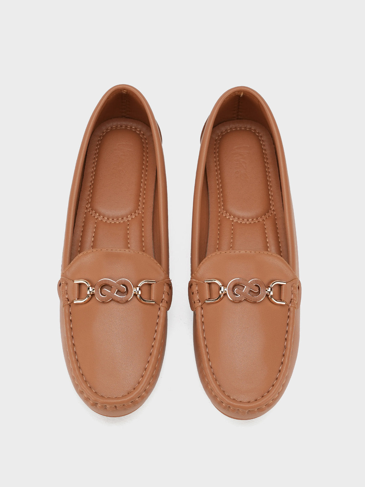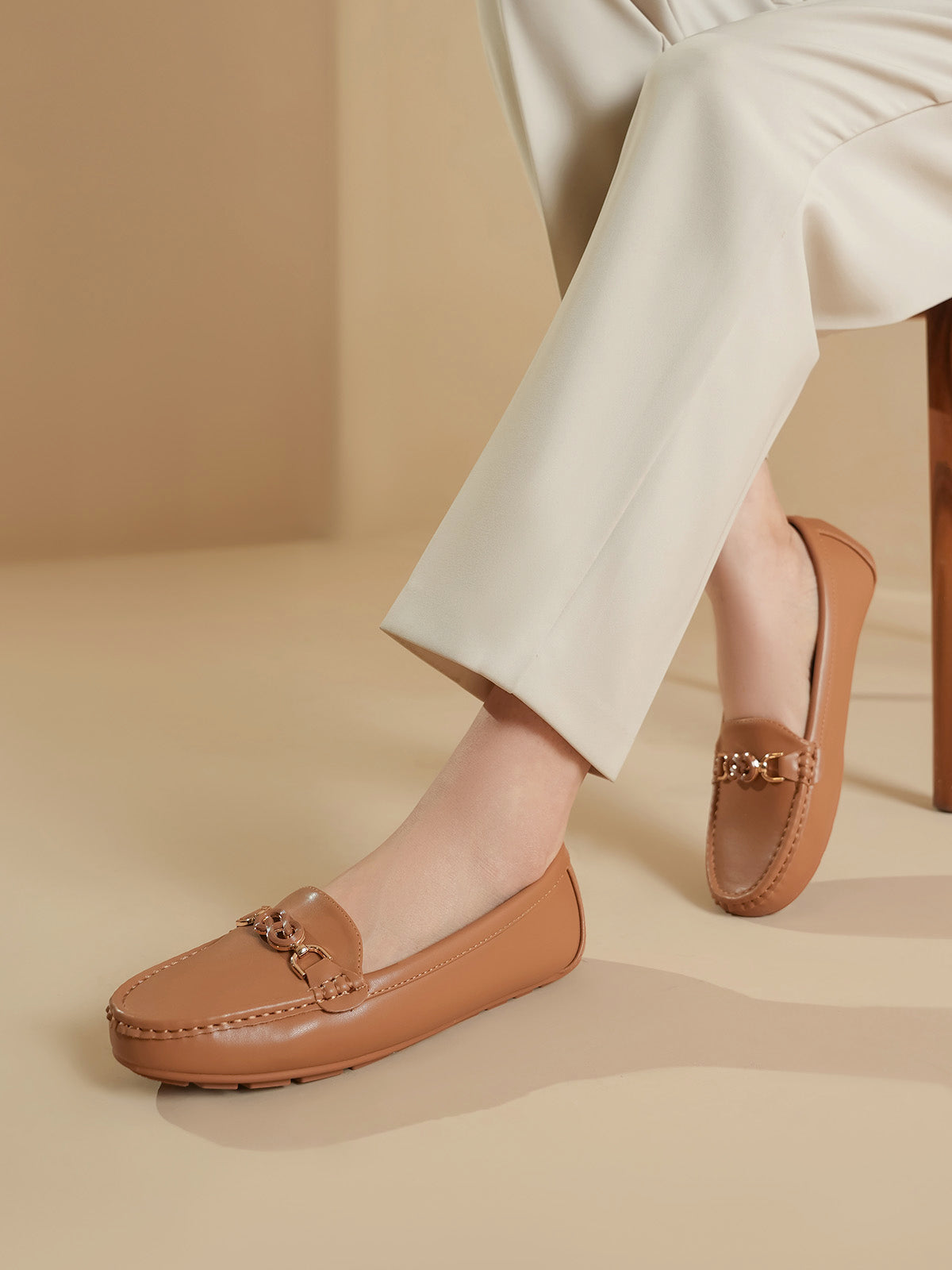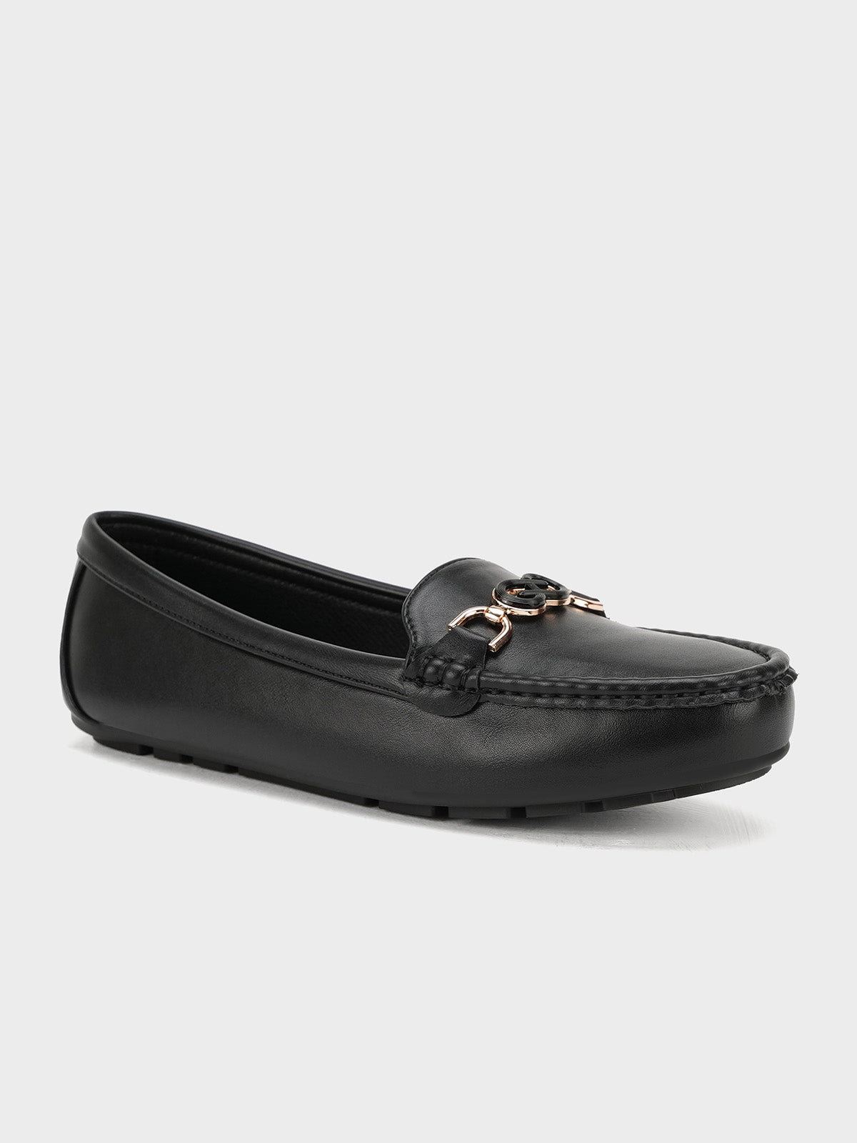 Step out in style with these elegant moccasins, featuring a sleek design and a fashionable buckle on top. Easy to slip on and made for all-day comfort, they’re perfect for both casual and semi-formal looks.