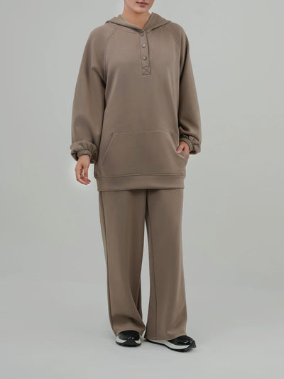 Stay warm and comfy in this soft fleece co-ord set for women. It features a button-up hoodie with front pocket and matching pants with elastic waist. Perfect for casual days, lounging, or running errands in style.