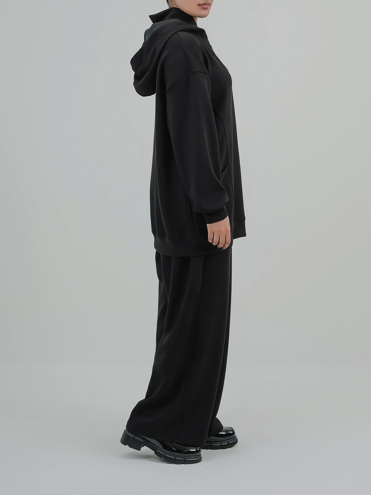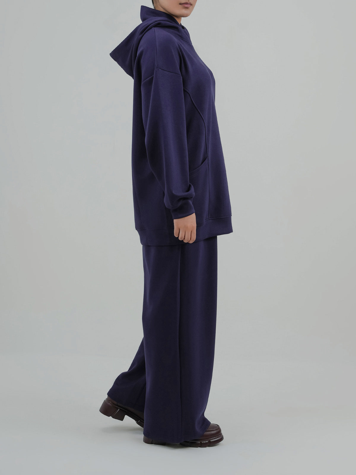 Upgrade your winter wardrobe with this stylish women's fleece co-ord set. Featuring a cozy high-neck top with roomy front pockets and matching wide-leg trousers, this set blends warmth with effortless style.