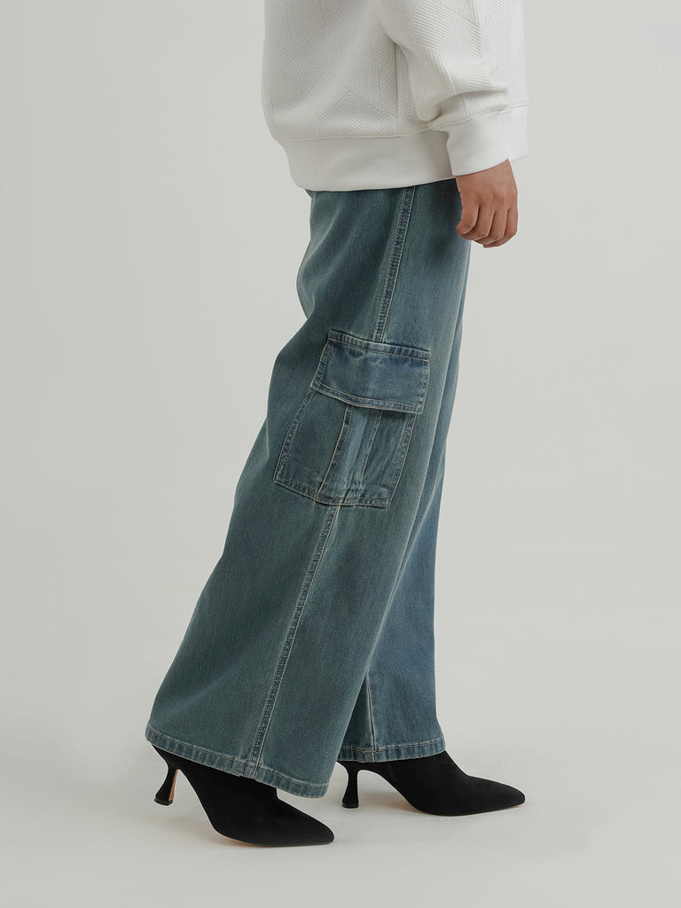 These women's cargo fit denim jeans are made from soft 100% cotton fabric for all-day comfort. Featuring a relaxed fit with functional cargo pockets, they offer a trendy yet practical style. Easy to pair with any top, they're perfect for everyday wear with a touch of street-style edge.
