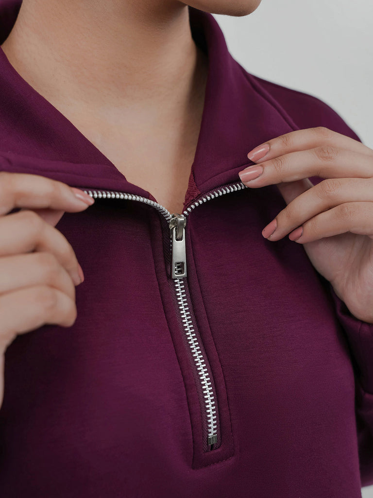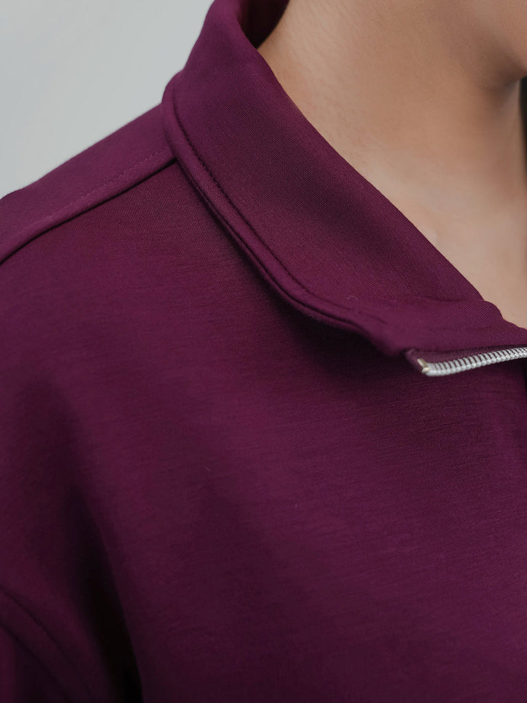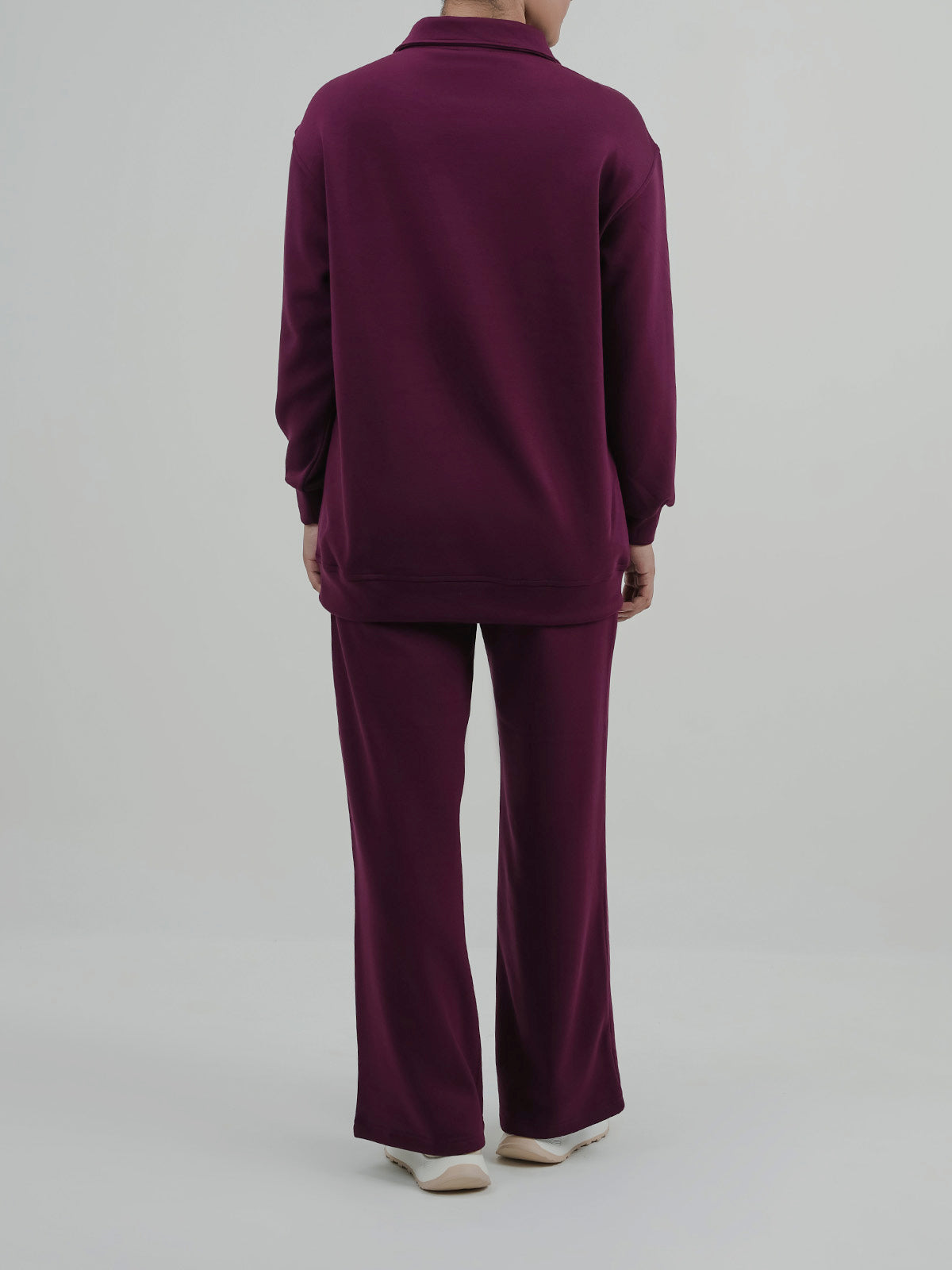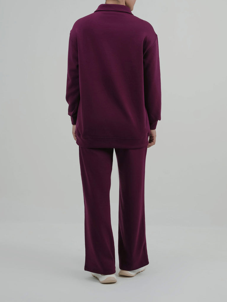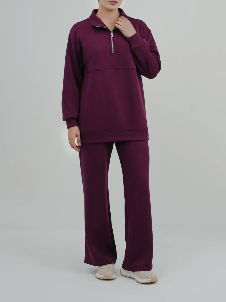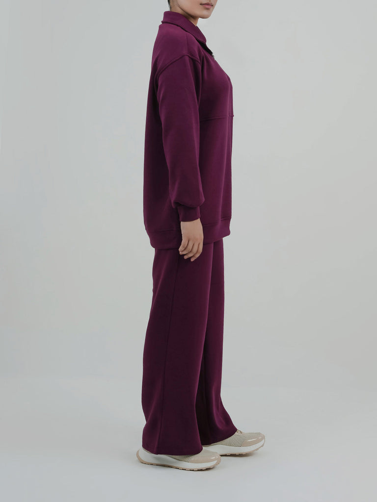Stay stylish and comfy with this women’s co-ord set, featuring a chic zip-up top and relaxed fit trousers. The rich maroon shade adds a touch of elegance, making it perfect for casual outings or lounging in style.