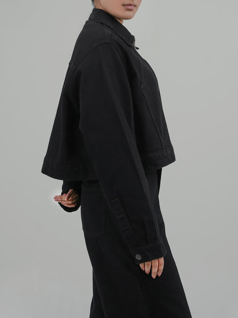 Add a trendy touch to your outfit with this women's cropped denim jacket. Featuring a short, modern cut and classic denim style, it’s perfect for layering over dresses or high-waisted bottoms.