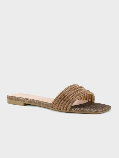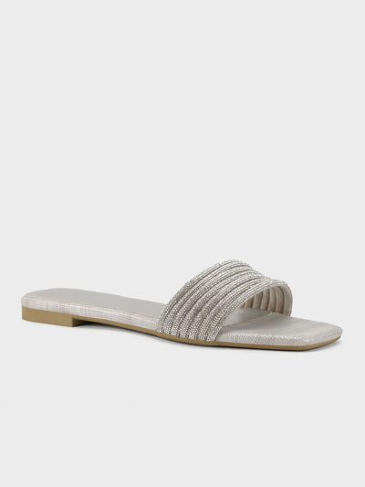 Keep it trendy with these flat summer slippers featuring decorative sleek straps. Comfortable and stylish, they’re perfect for long days and effortless chic. Easy slip on wearing comes with square toe.