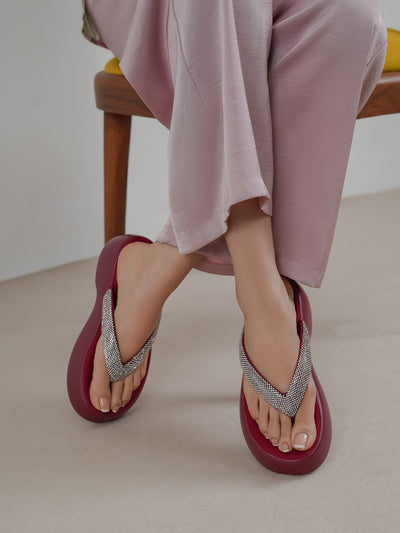 These low-heeled shoes provide a perfect balance of comfort and elegance with a PU sole, making them ideal for both work and leisure. Thong construction comes with open toe and comfy insole.