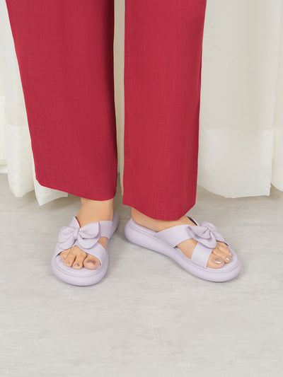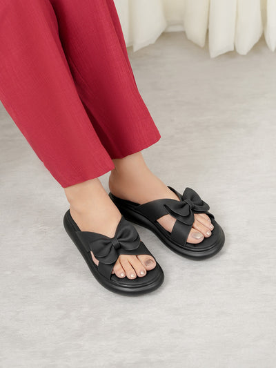 Add subtle height and style with these heeled slippers, designed with a durable PU sole. Ideal for women seeking both comfort and elegance. Bow accented upper comes with ultra cushioning insole.