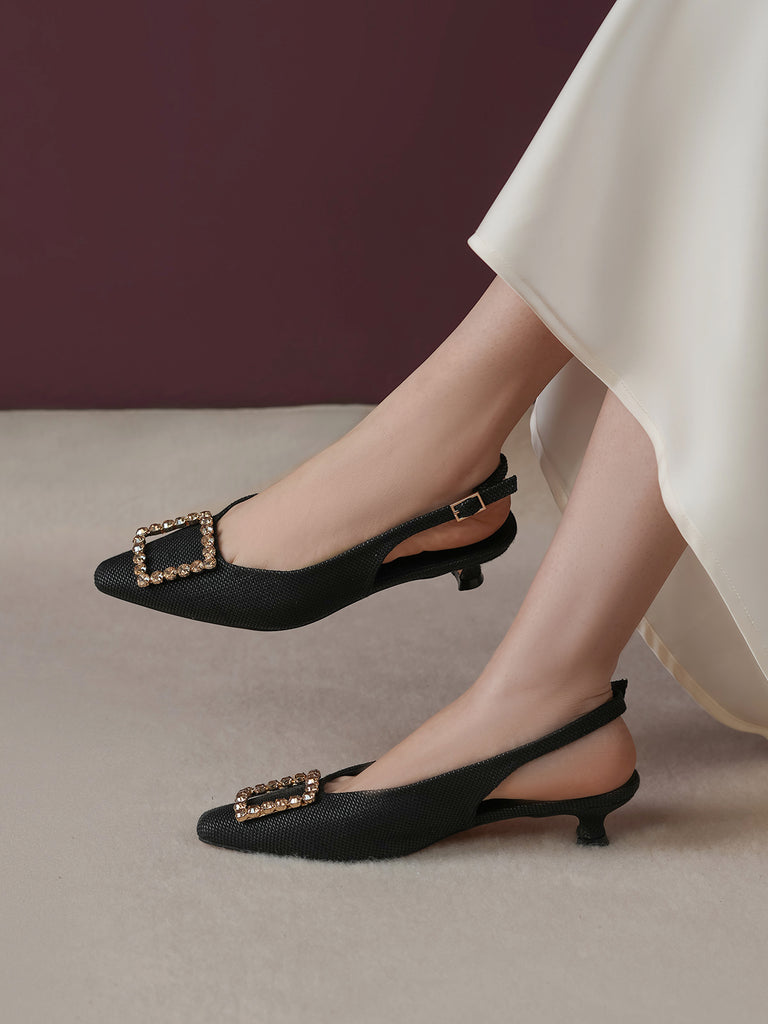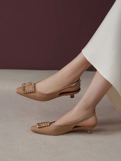 Step out in elegance with these women’s kitten heel sandals featuring a chic fancy buckle. Designed for comfort and style, these sandals offer a low heel for easy wear and a fashionable look that’s perfect for both casual and dressy occasions.
