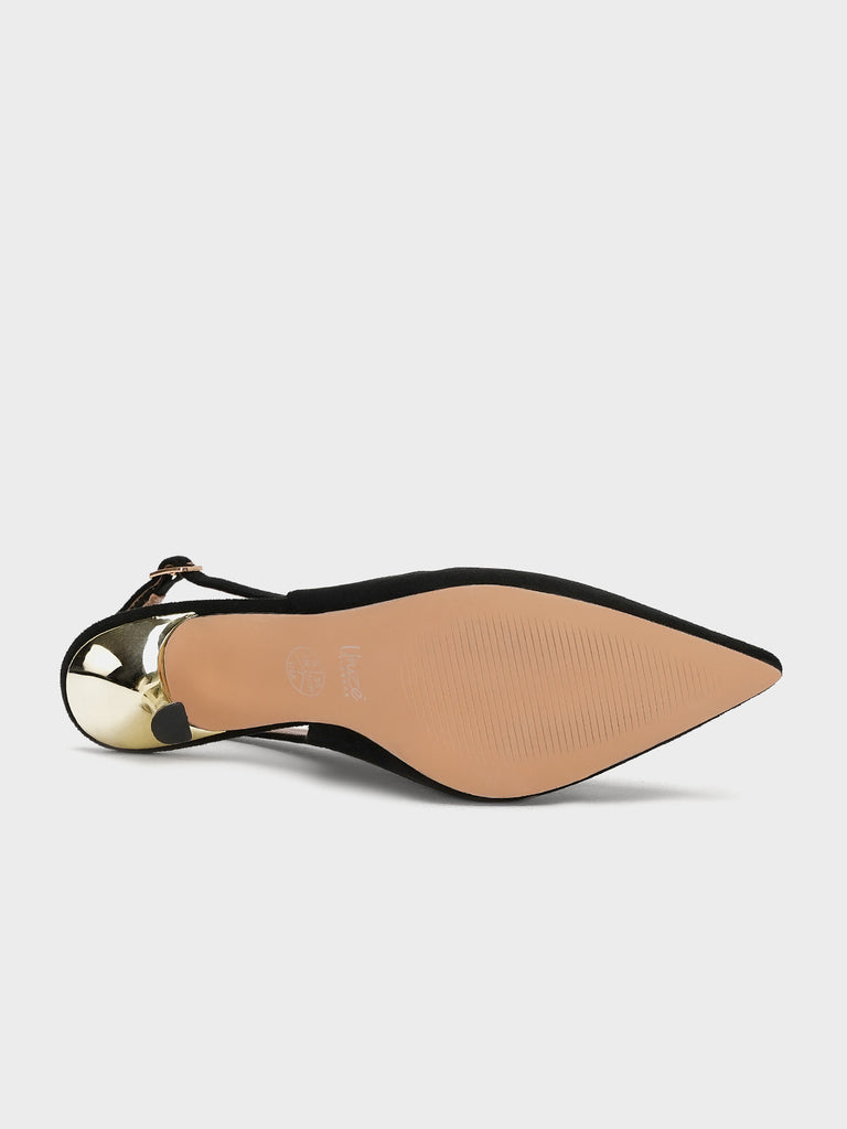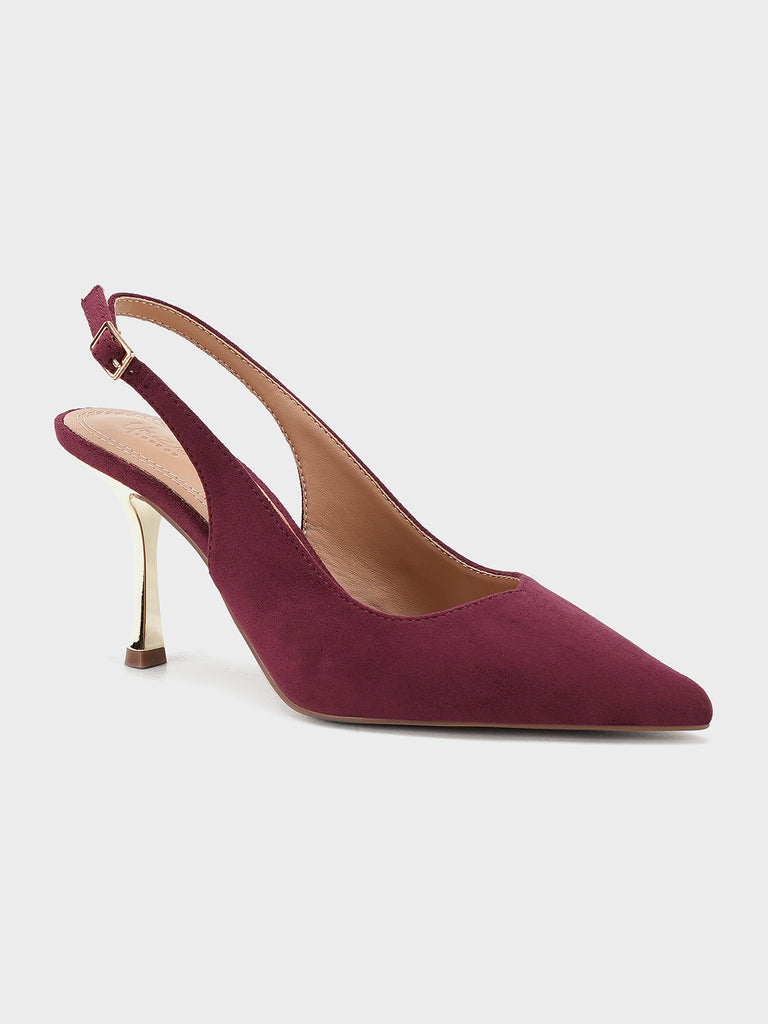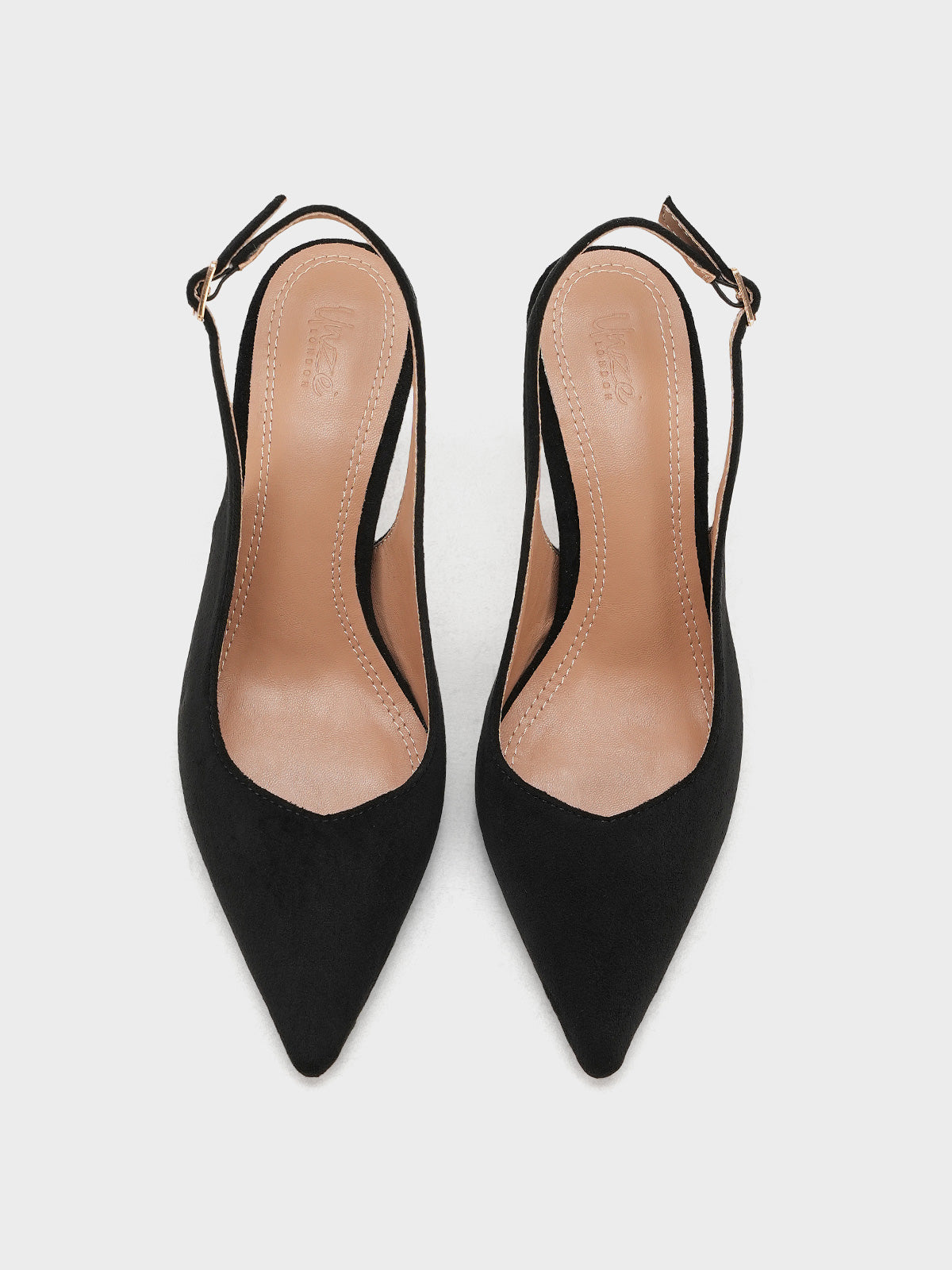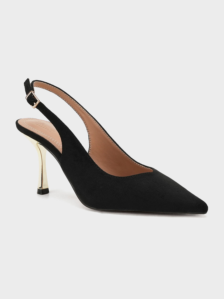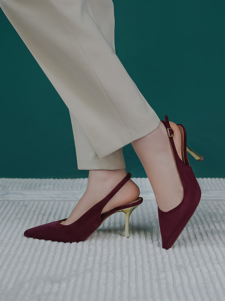 Add elegance to your steps with these pointed-toe women’s sandals featuring a stylish slingback buckle. Crafted in a soft suede finish, they offer a refined look with a sleek stiletto heel for just the right amount of height.
