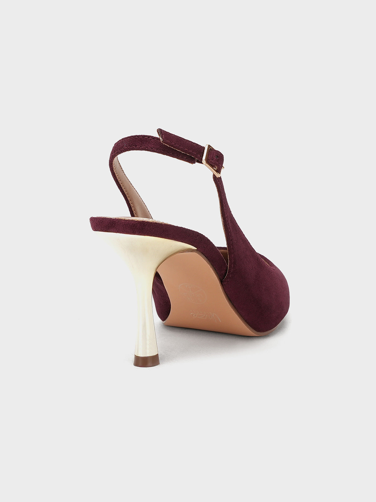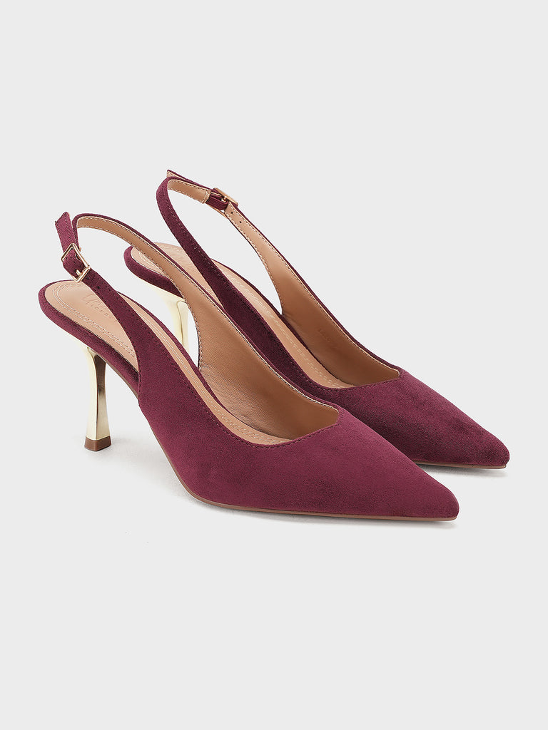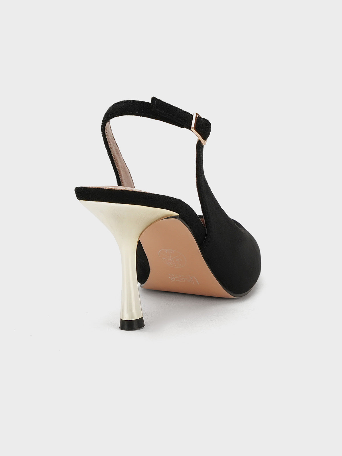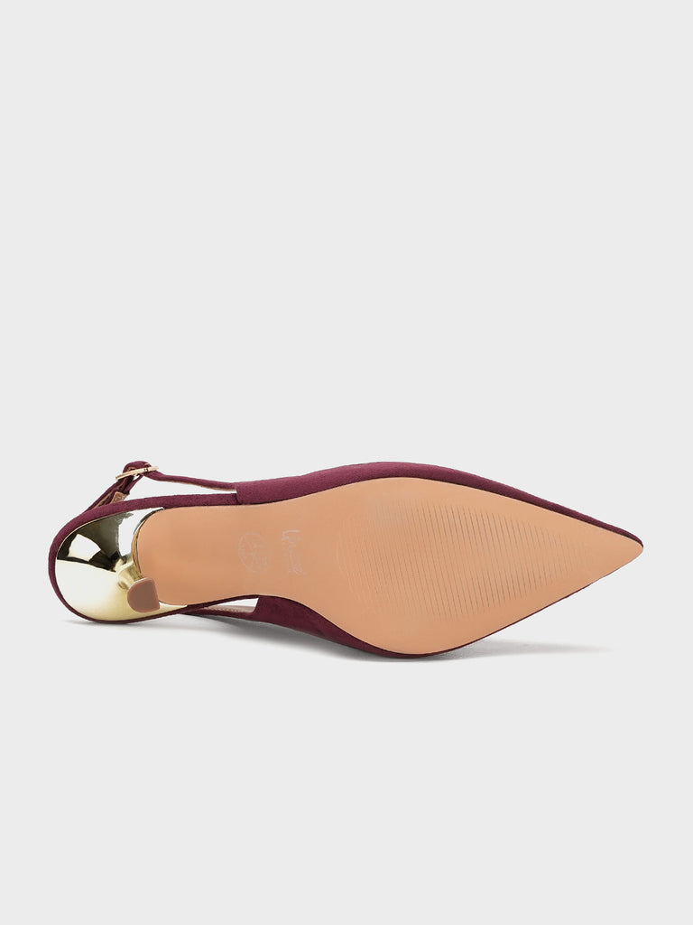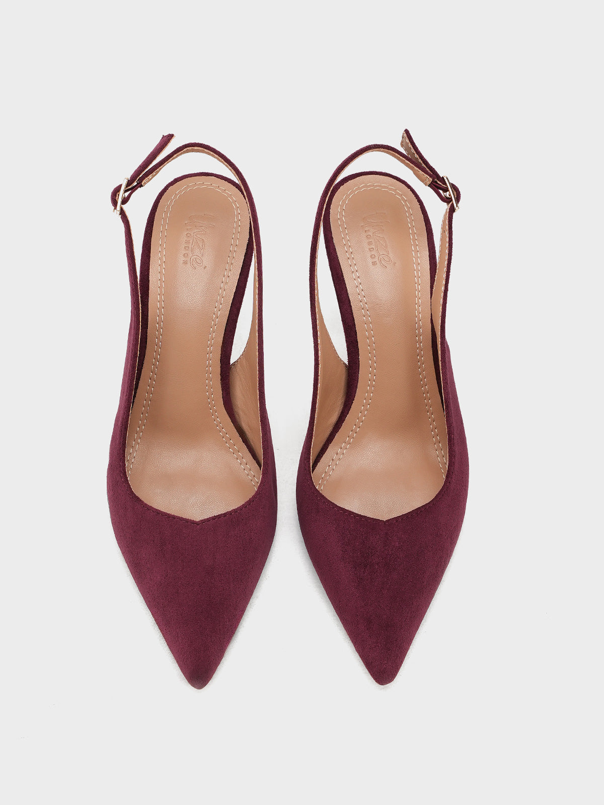 Add elegance to your steps with these pointed-toe women’s sandals featuring a stylish slingback buckle. Crafted in a soft suede finish, they offer a refined look with a sleek stiletto heel for just the right amount of height.