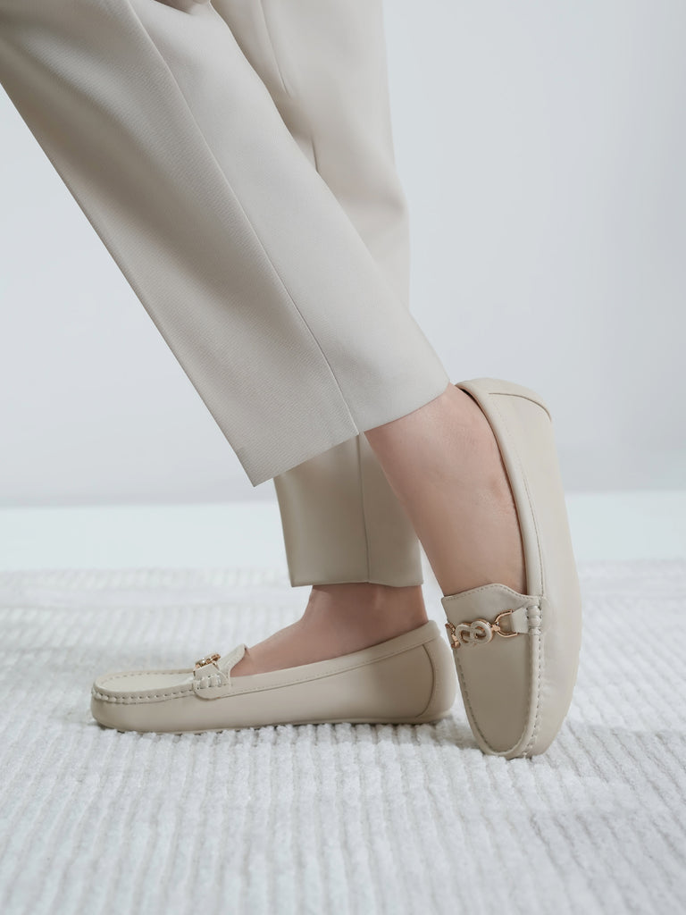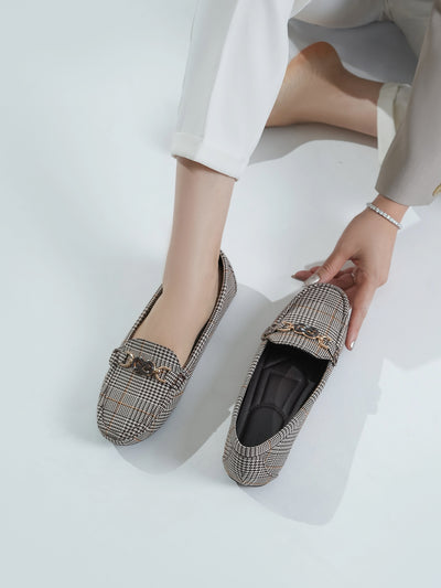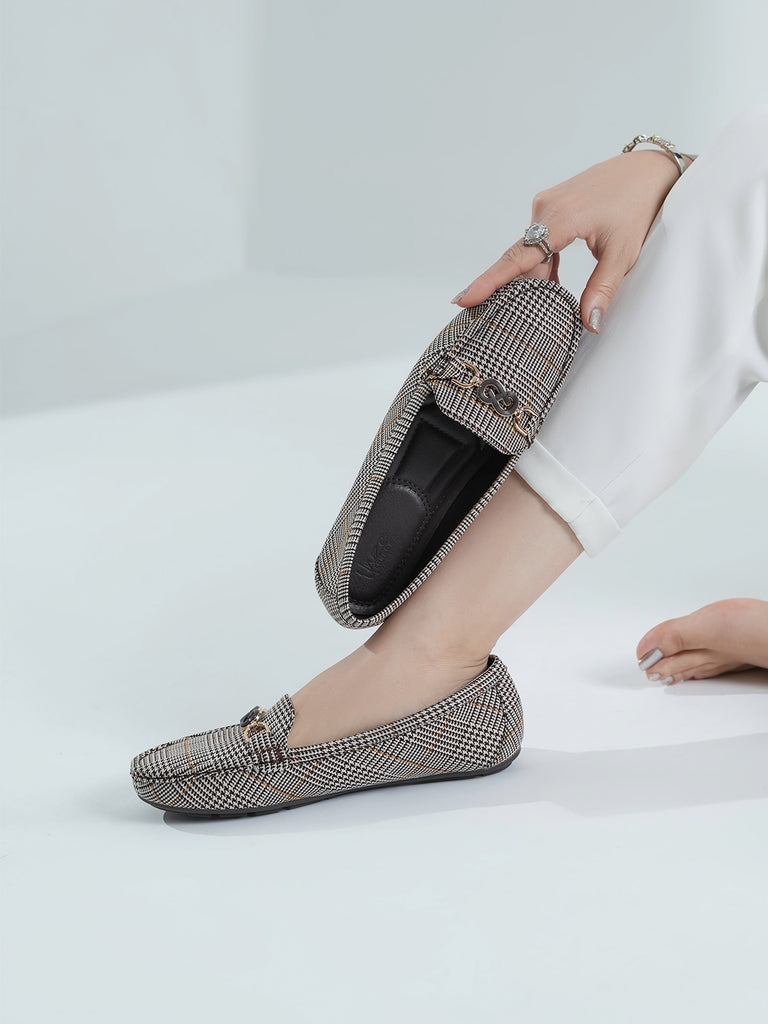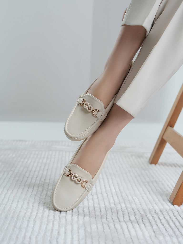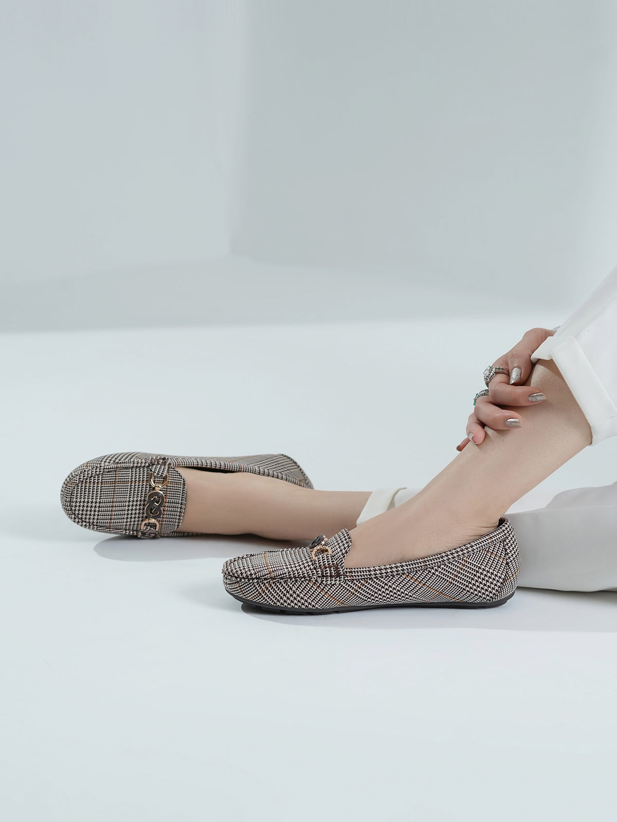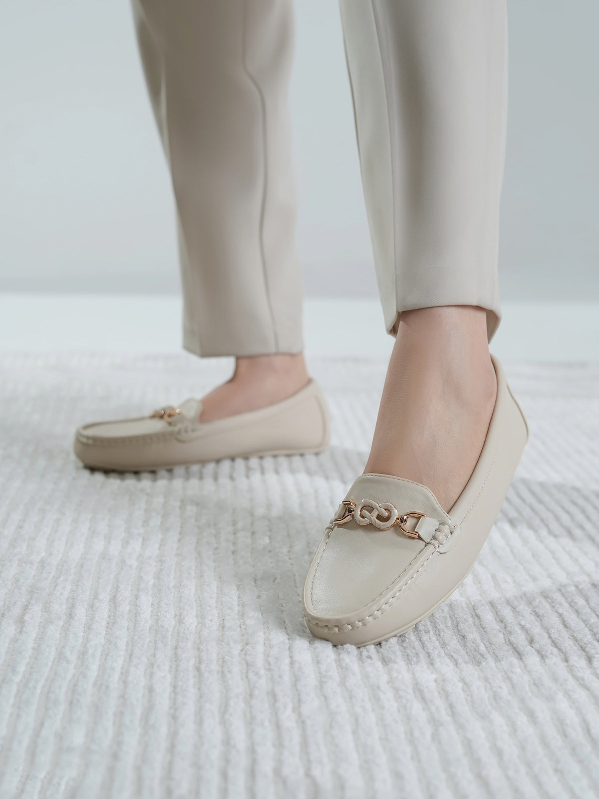 Step out in style with these elegant moccasins, featuring a sleek design and a fashionable buckle on top. Easy to slip on and made for all-day comfort, they’re perfect for both casual and semi-formal looks.