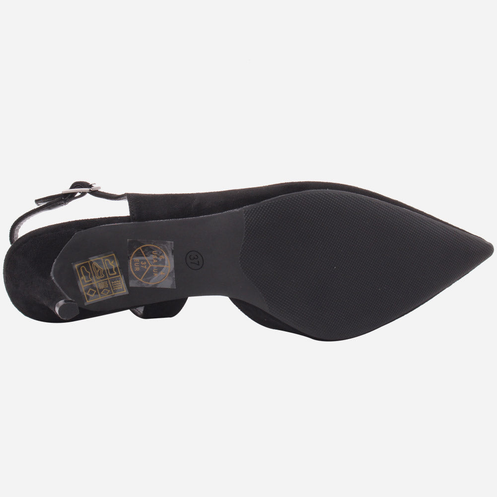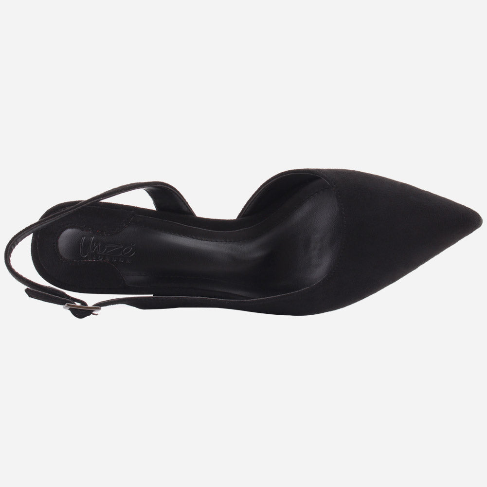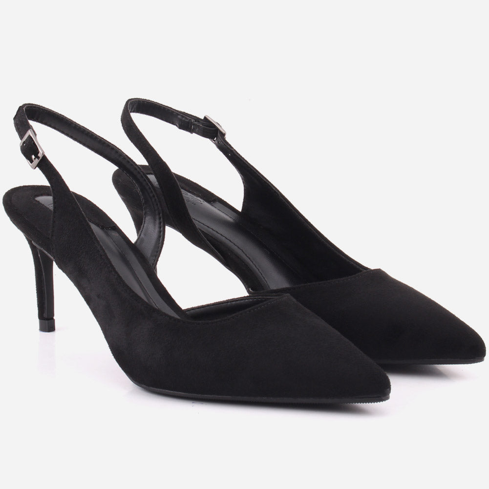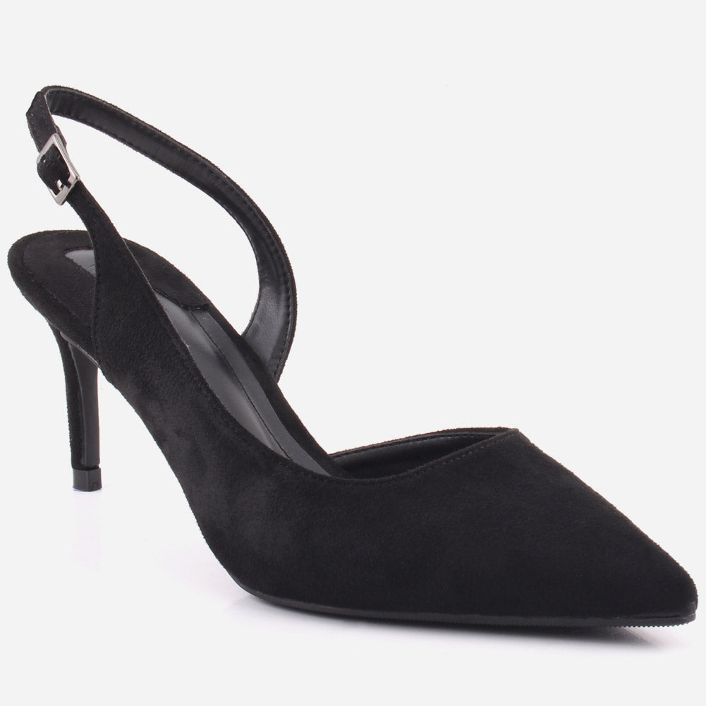 Classic stiletto heel best in comfort with a side cut style is good for all day wearing. Pointed closed toe with a shimmery surface enhances its charm and the sling back strap helps to adjust the fitting freely. Its sling back style adds a sexy appeal to the shoe.