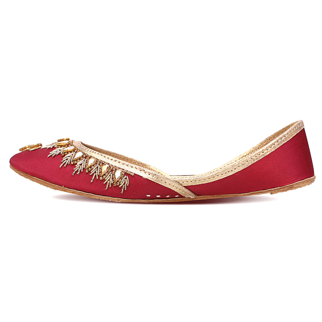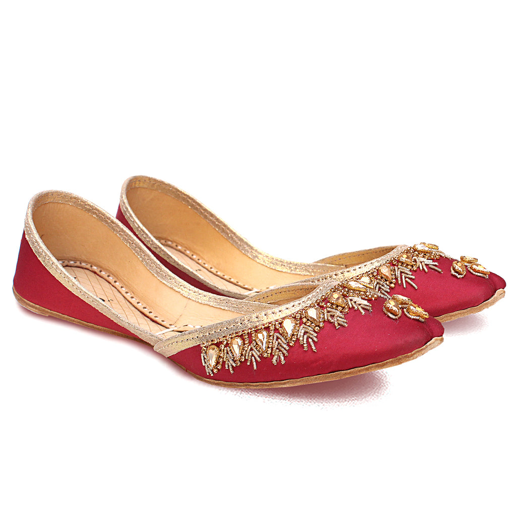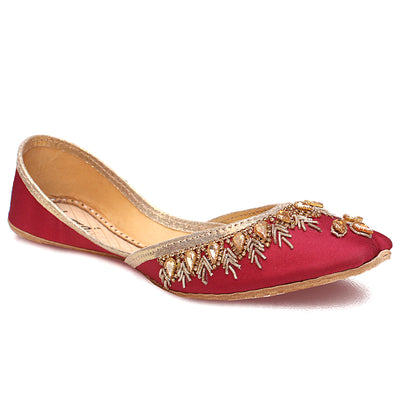 Experience the elegance of simplicity with our adorable and chic net Flat shoes. These well-crafted khussa shoes feature handwork detailing on the top, all sewn by hand. The easy slip-on construction allows for quick on and off, while the manmade sole and net upper are beautifully adorned with beads and hand embroidery. Our shoes are a true depiction of expert craftsmanship, perfect for any occasion. Whether you're dressing up or down, these pumps can be worn anywhere, anytime.