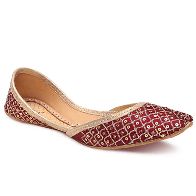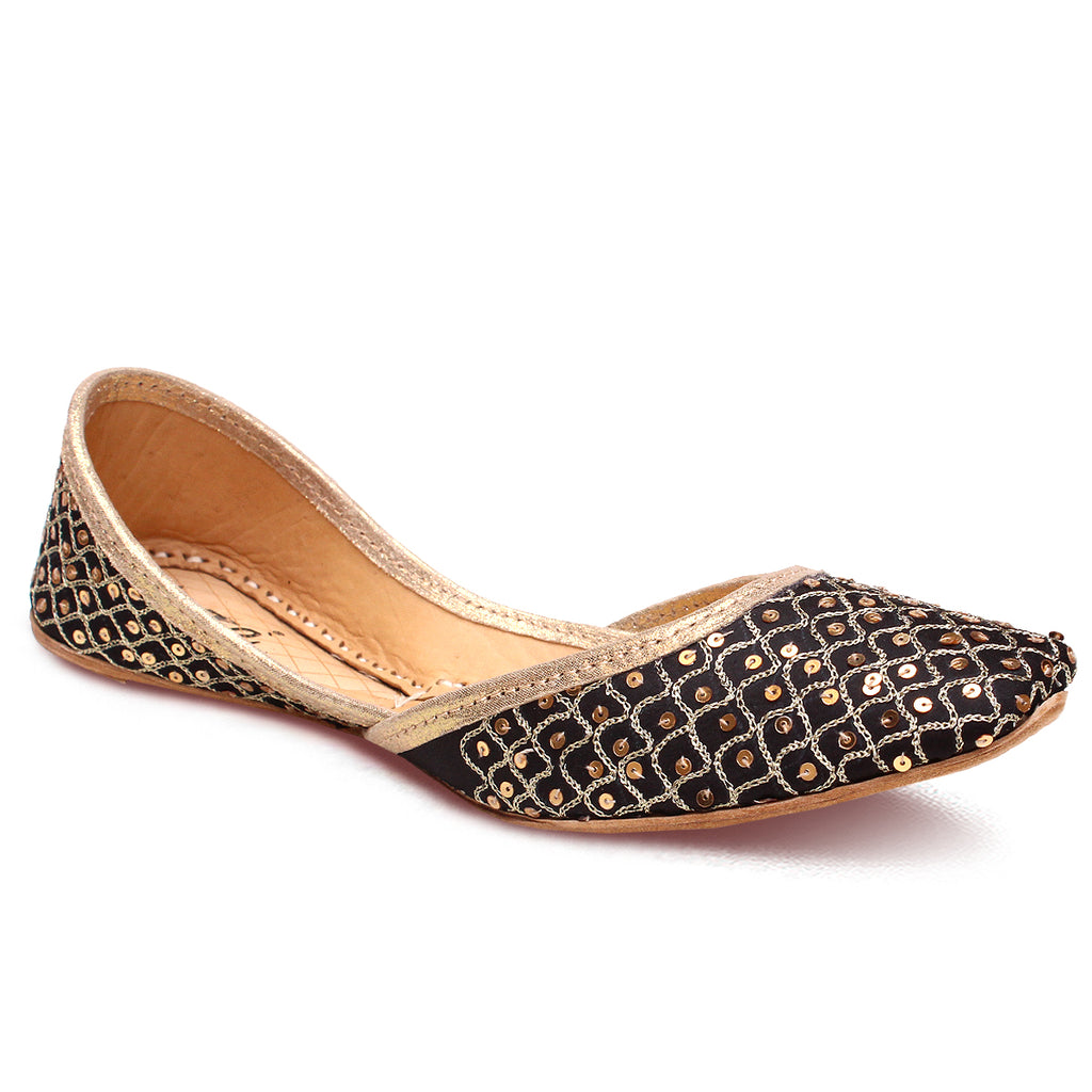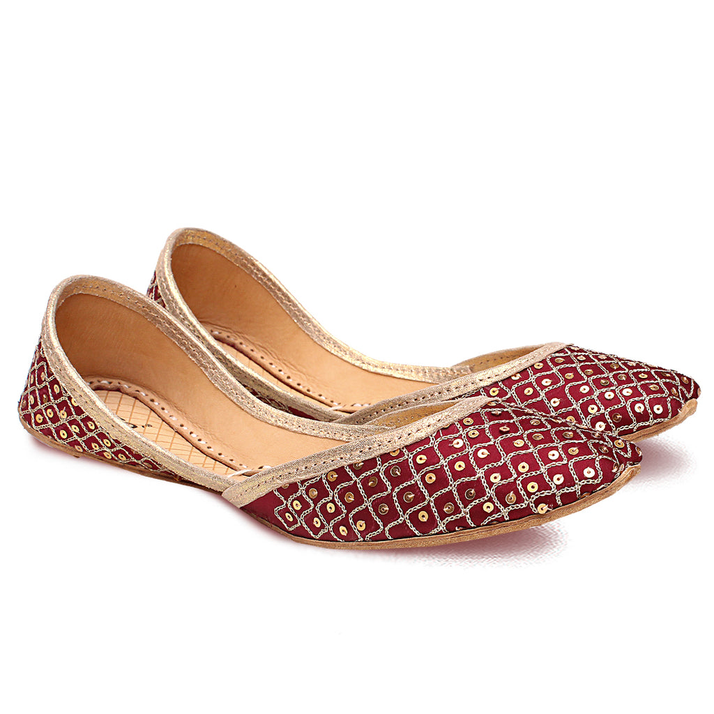 Introducing our exquisite handcrafted dressy flat shoes for weddings, adorned with stunning beads and diamantes. These shoes are the perfect choice for a beach wedding, especially if you plan on wearing a short wedding dress. Our Punjabi Jutti is a true masterpiece in terms of quality and design. Each pair is meticulously handmade using only the finest materials available. The upper of these traditional juttis is adorned with intricate tila work, crafted by the best craftsmen in the industry. Not only are these shoes beautiful, but they are also incredibly comfortable to wear. You can dance the night away without worrying about sore feet. Make a statement on your special day with our dressy flat shoes for weddings. Order yours today and experience the perfect combination of style and comfort.