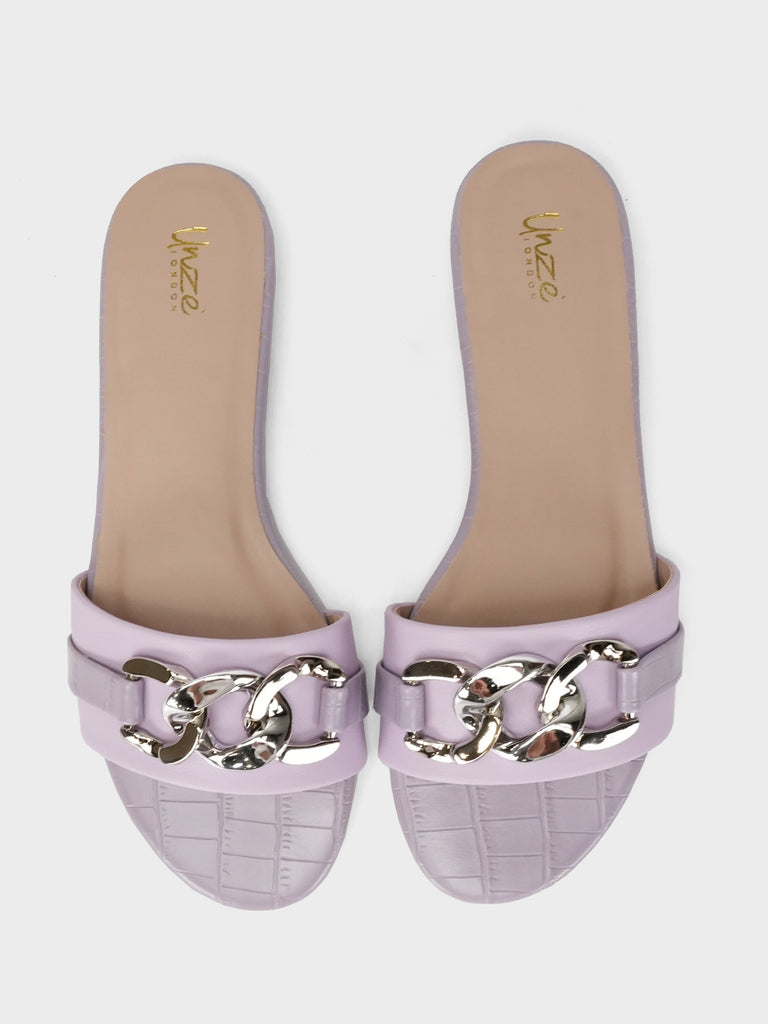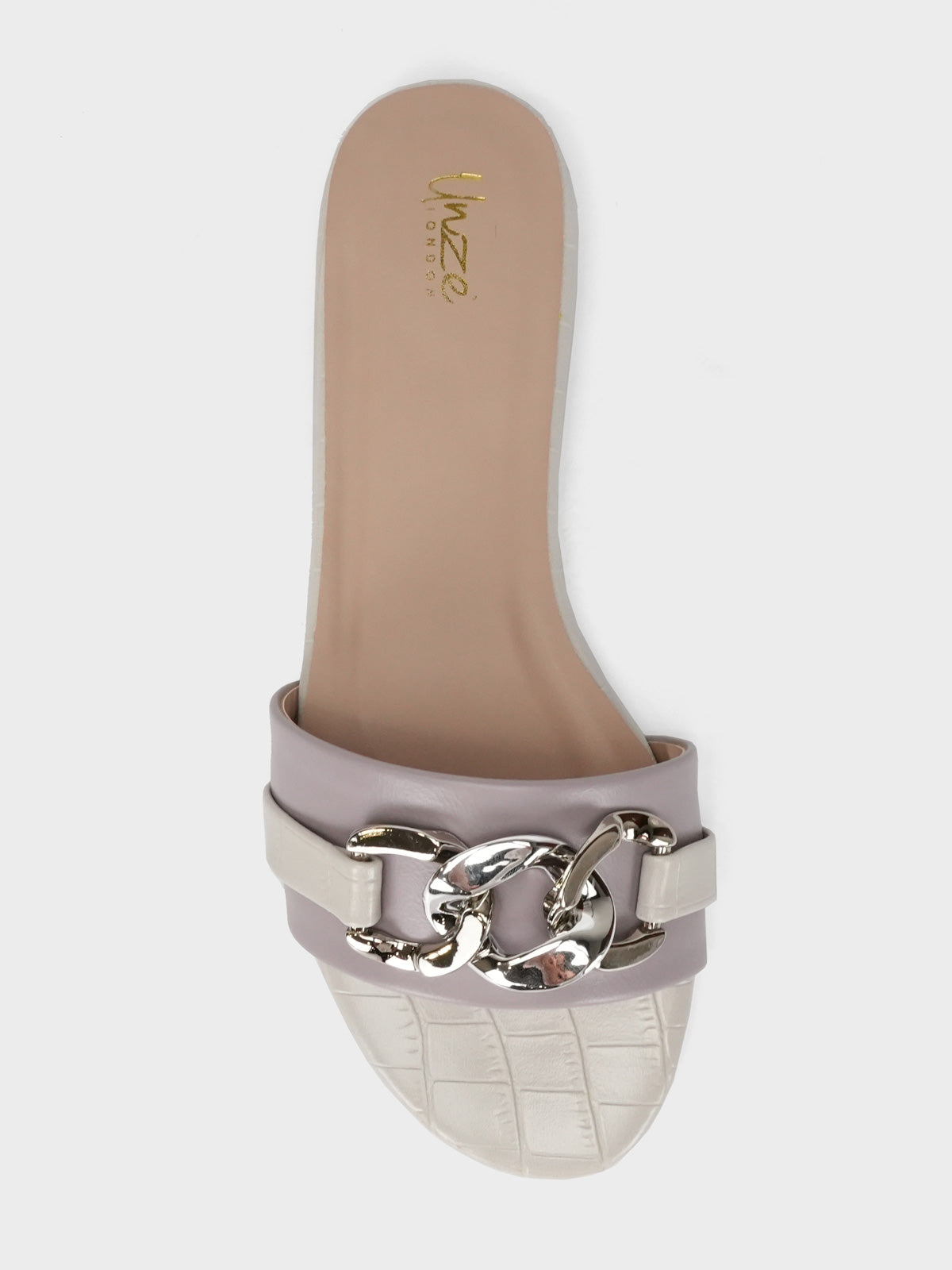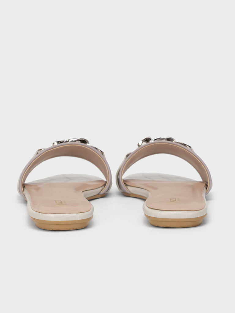 A very fashionable and trendy shoes that surely grab all the attention. These slip-on have some gem in itself with its metallic buckled detailing with crafted upper with a PU upper and lining, they feature a contoured insole for superior comfort. The almond shaped style and open toe silhouette are complemented by a strappy design with a wide single top bar style. The rubber outsole provides high traction and durability, ensuring you can look and feel your best all day long.