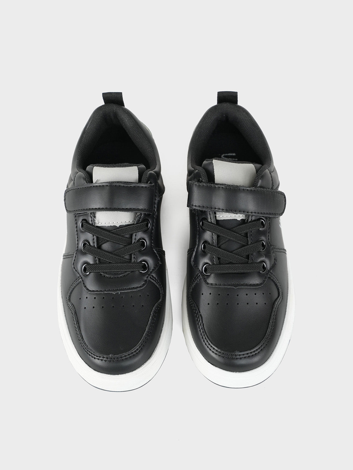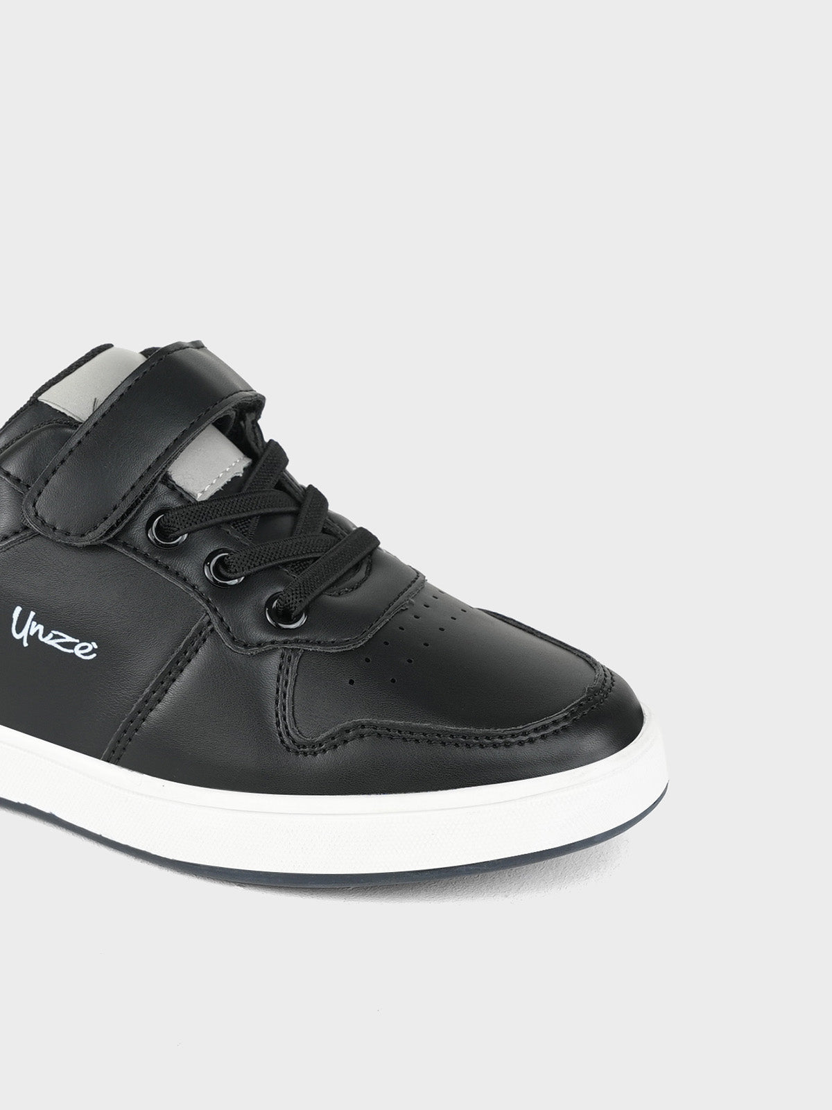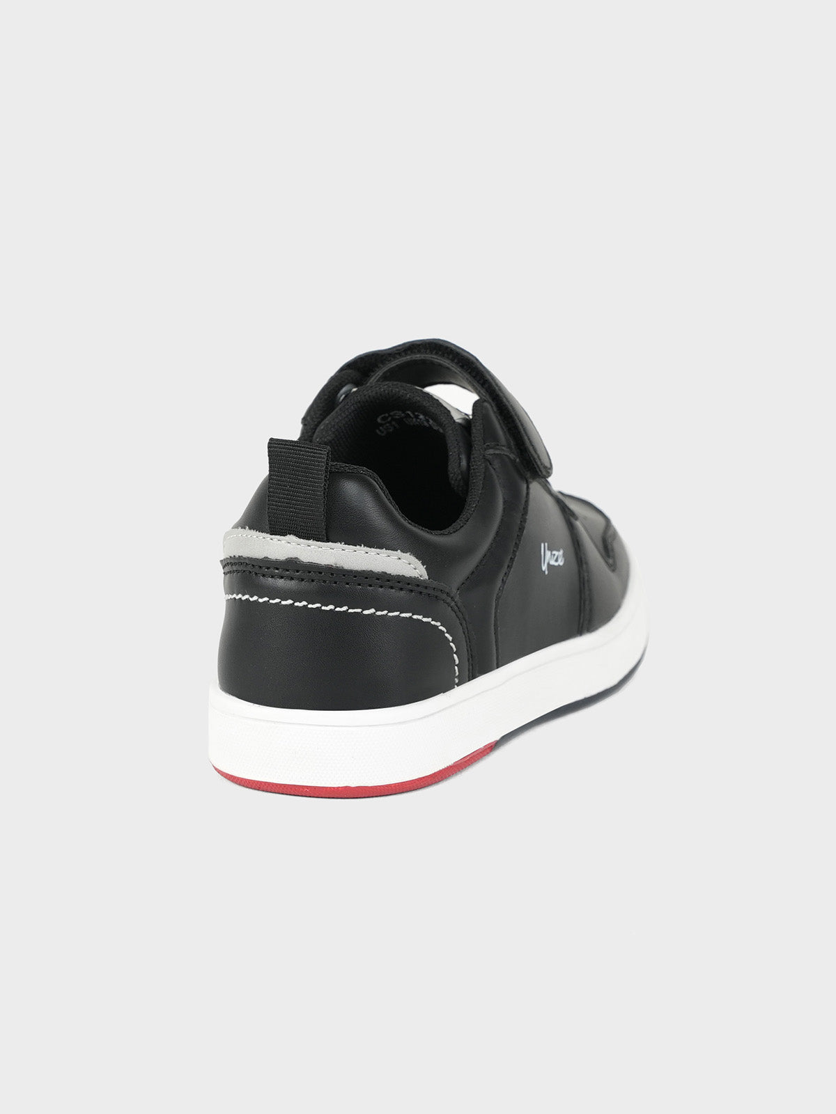 Our boys' trainers made with durable PU material offer both style and comfort. Perfect for everyday wear, these trainers feature a sleek design and cushioned insoles for all-day support. Available in multiple colors to match any outfit. Easys slip on construction comes with stretchable upper.