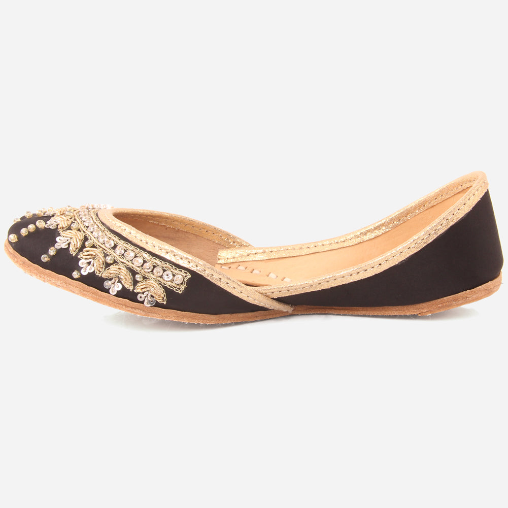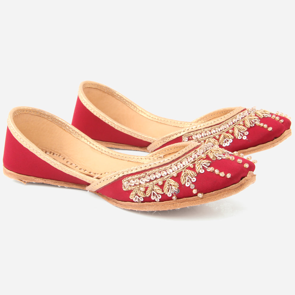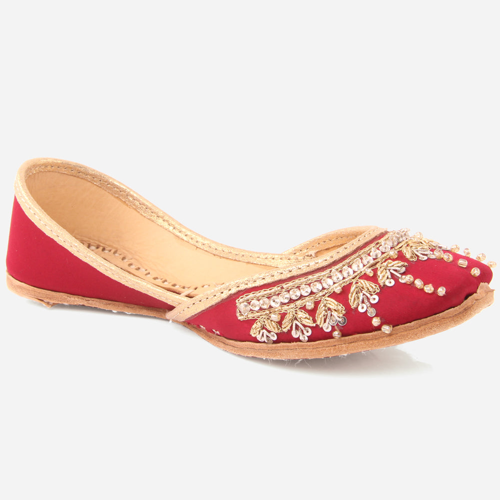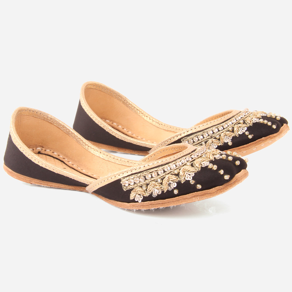 These stylish ballet style flat Indian Khussa is always best choice from day wear to evening out. Fully embellished and embroidered upper that is made of leather. Easy slip on construction is for quick on and off. Handcrafted and hand made these pumps are genuine leather made with inside stitch detailing.
