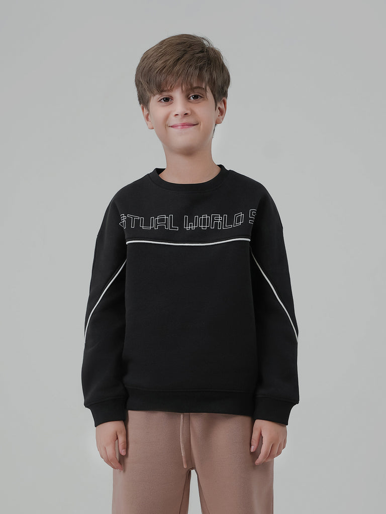 This fleece sweatshirt with cut & sew raglan sleeves brings a sporty and stylish look. Made from soft, warm fabric, it offers all-day comfort with a modern design. Perfect for school, play, or casual wear — comfy, cool, and easy to move in.