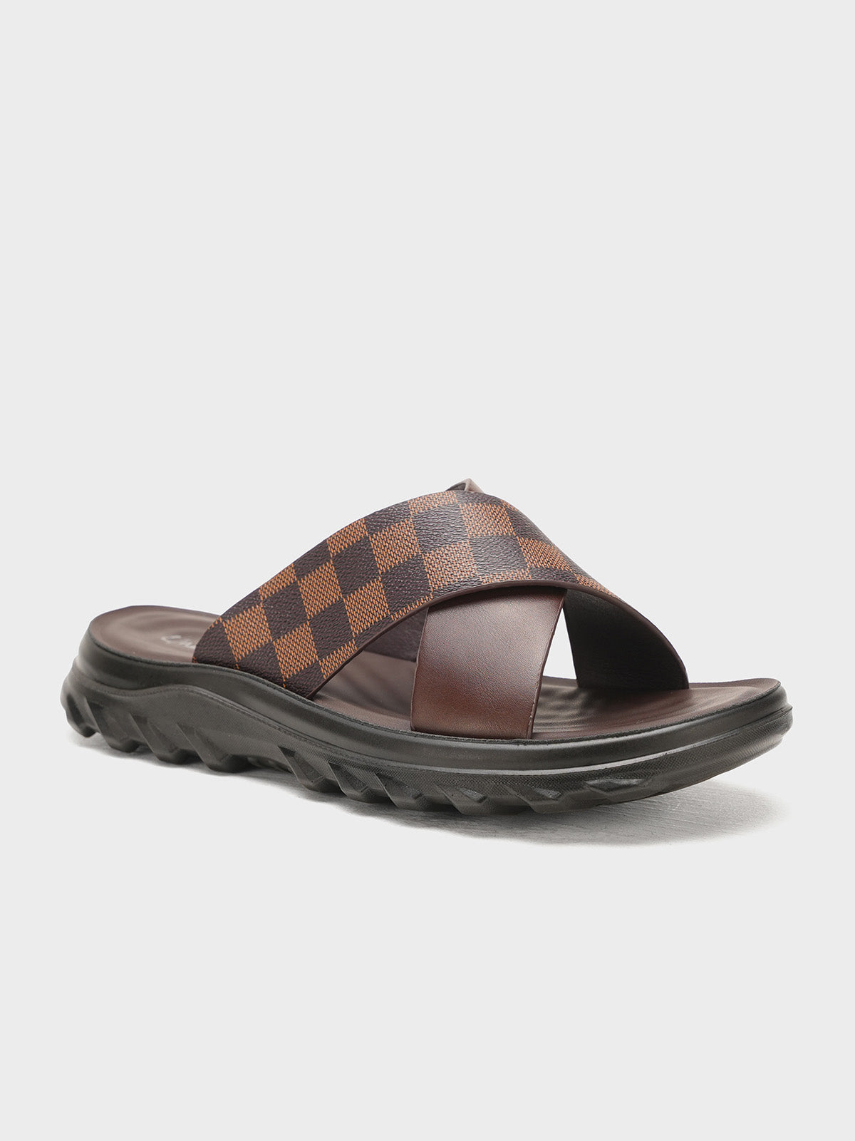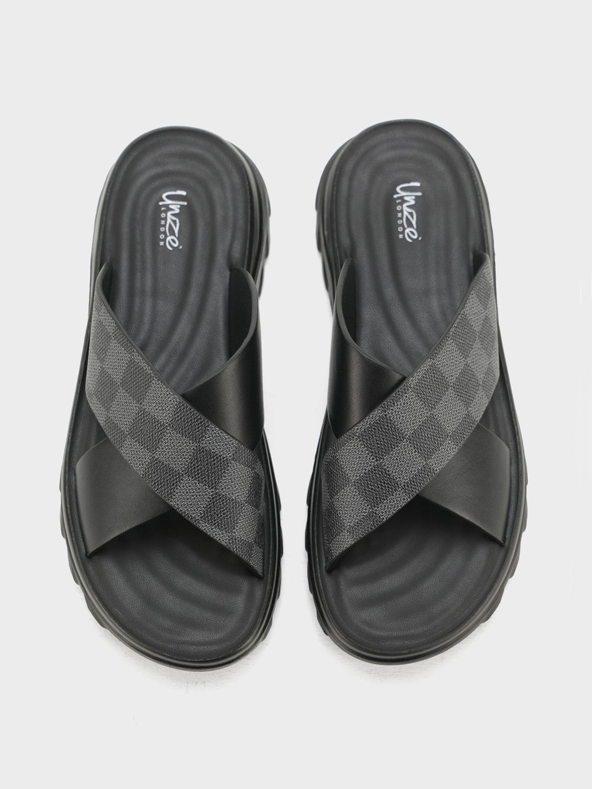 Step into comfort with these stylish men’s slippers. Featuring a durable rubber sole, they offer excellent grip and long-lasting wear. The cross-strap design ensures a secure and snug fit, while the soft upper provides all-day comfort.