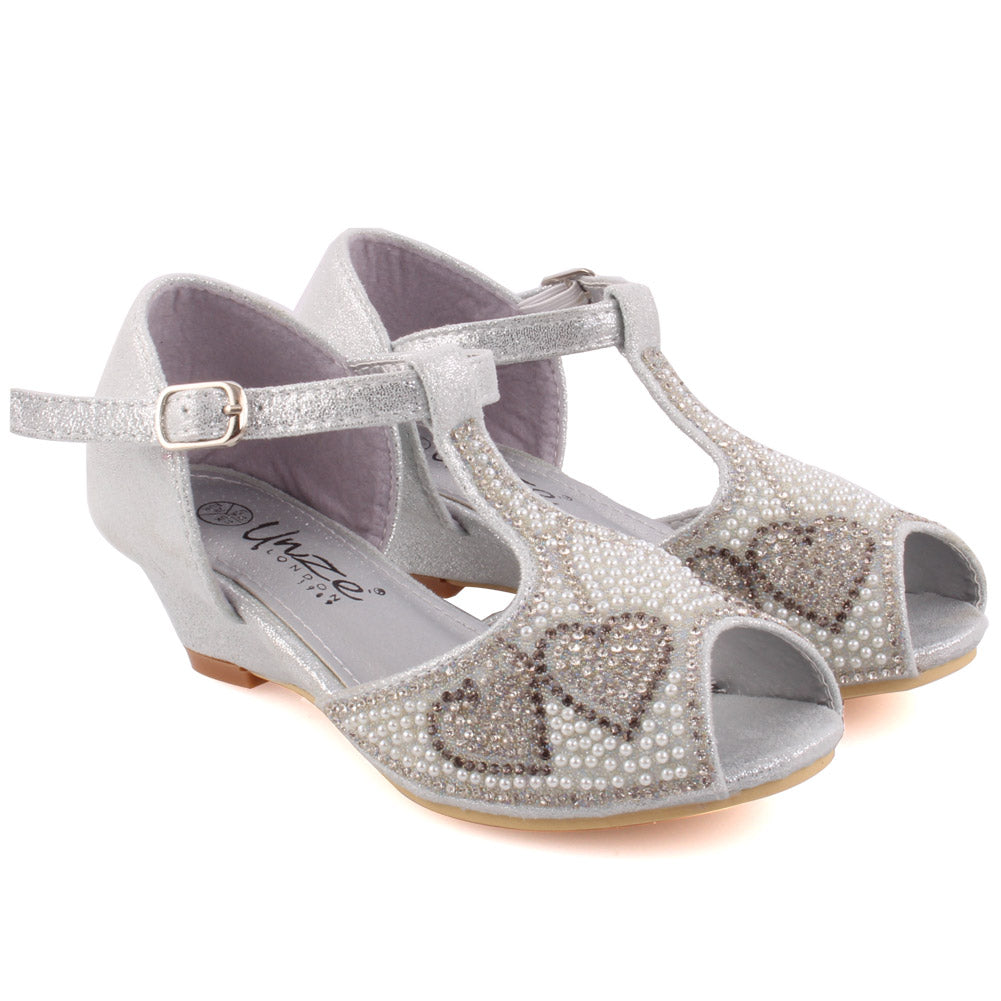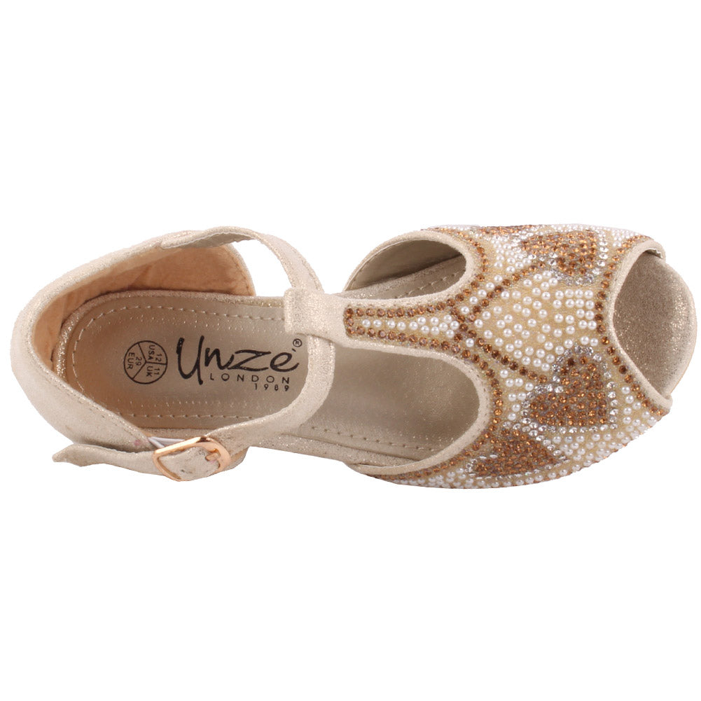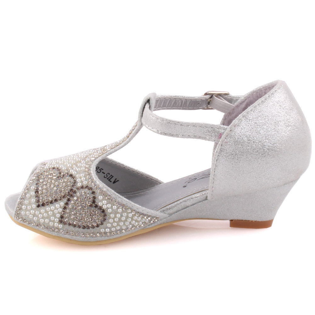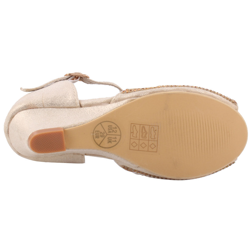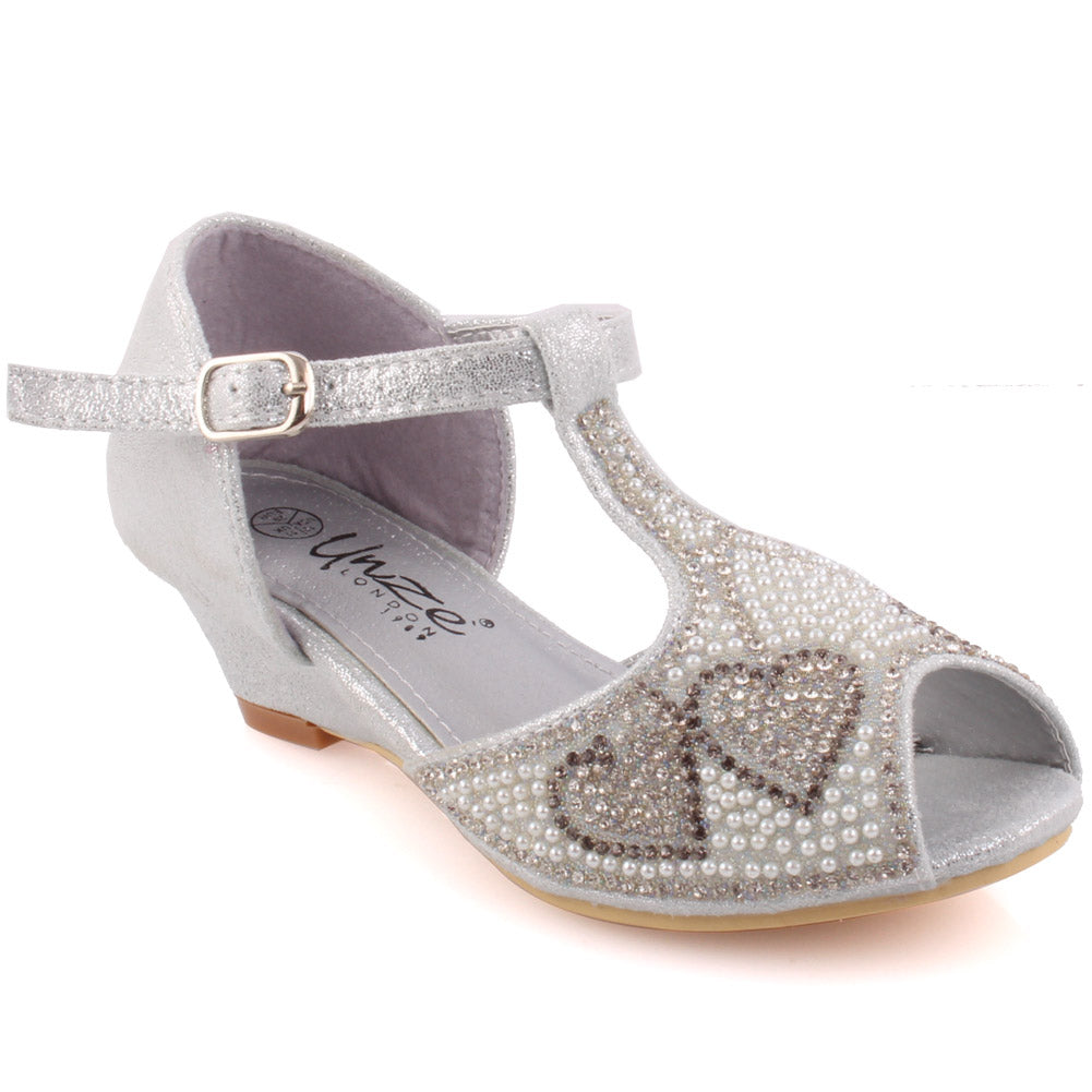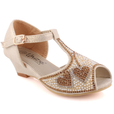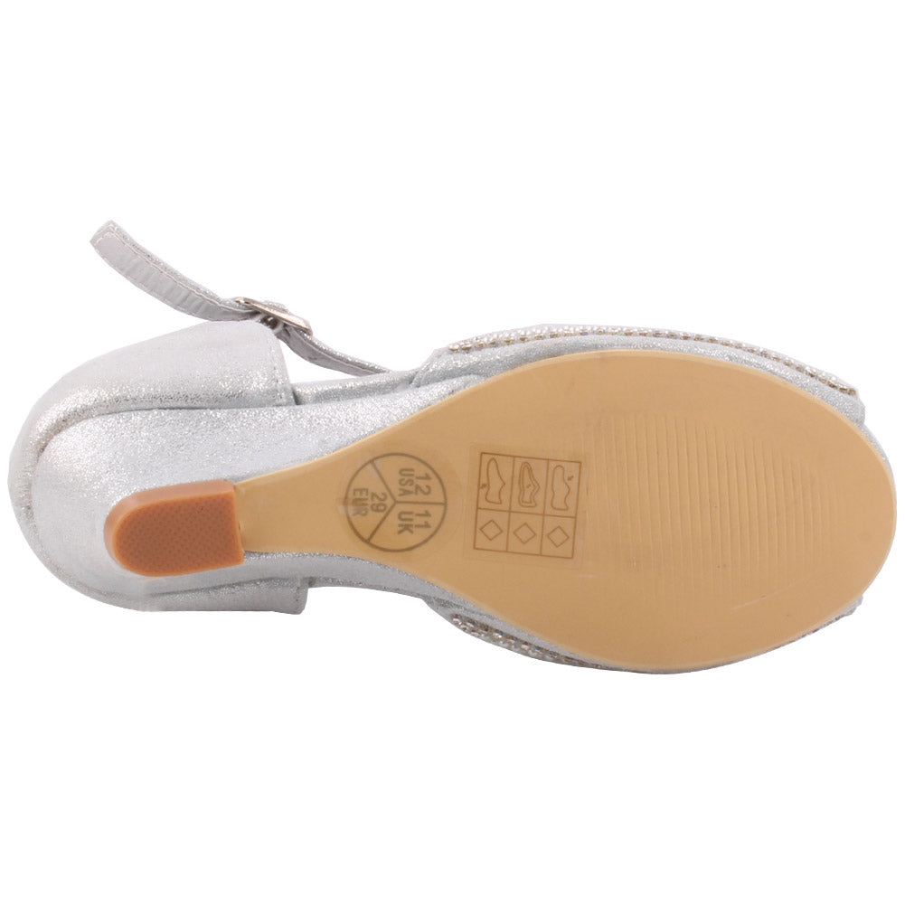 Get dressed and be the princess in these charming enhanced shoes. Pretty precious stone itemizing makes the upper delightful. Peep toe adds style to it. Sparkling PU adds glam to it. Movable clasp closure is for consummate fitting. Small subtle low heel gives little drift, while cushioned foot bed for additional solace. PU upper, sole and synthetic lining material are utilized as a part of these charming pump court shoes.