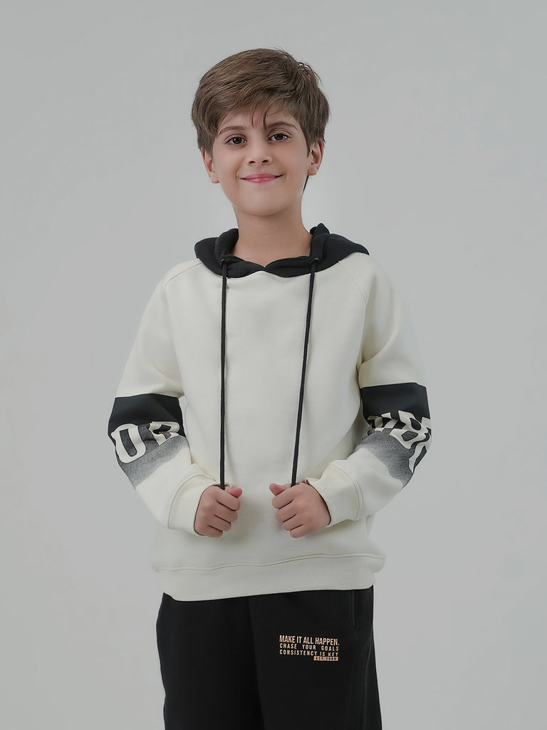 This boys' fleece hoodie is designed with a cool cut & sew pattern and comfy raglan sleeves for a sporty look and easy movement. Cozy, stylish, and made for active kids!