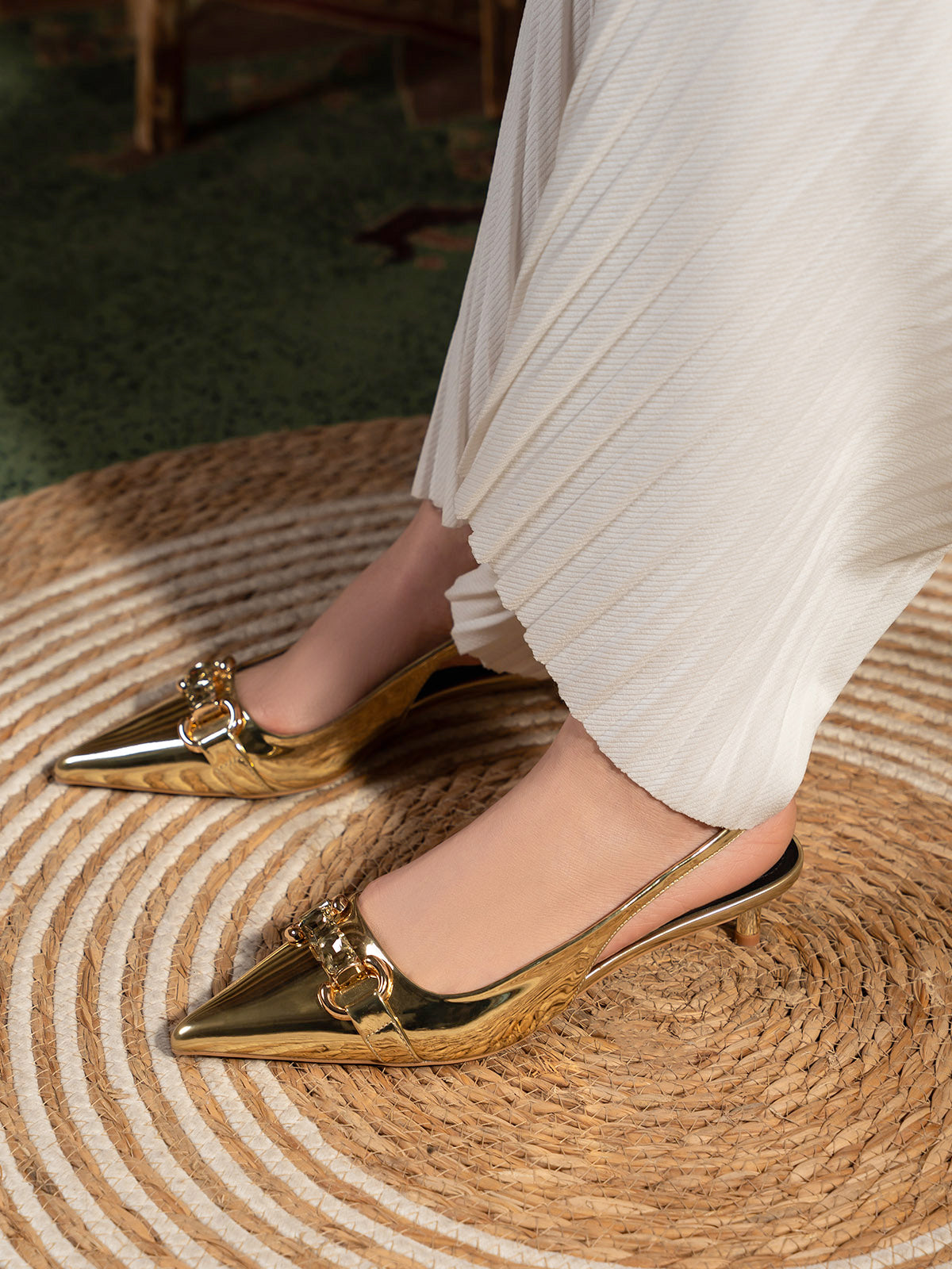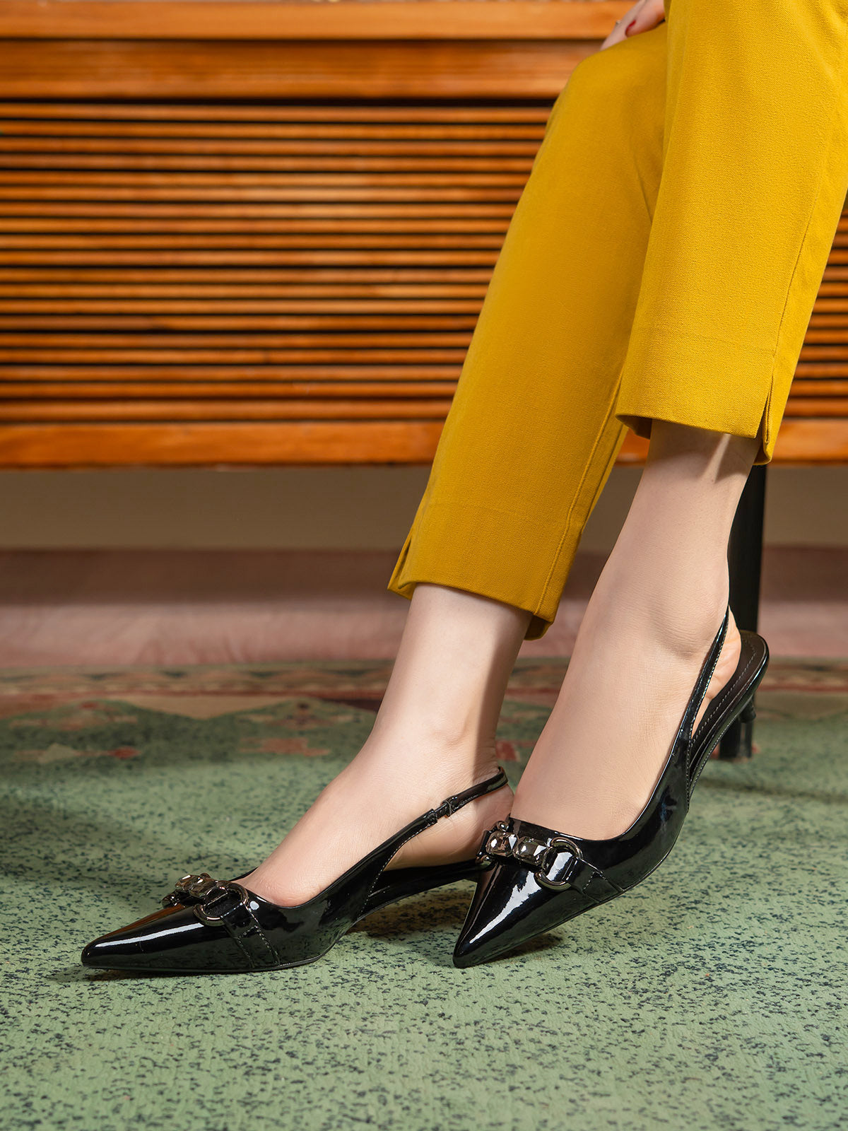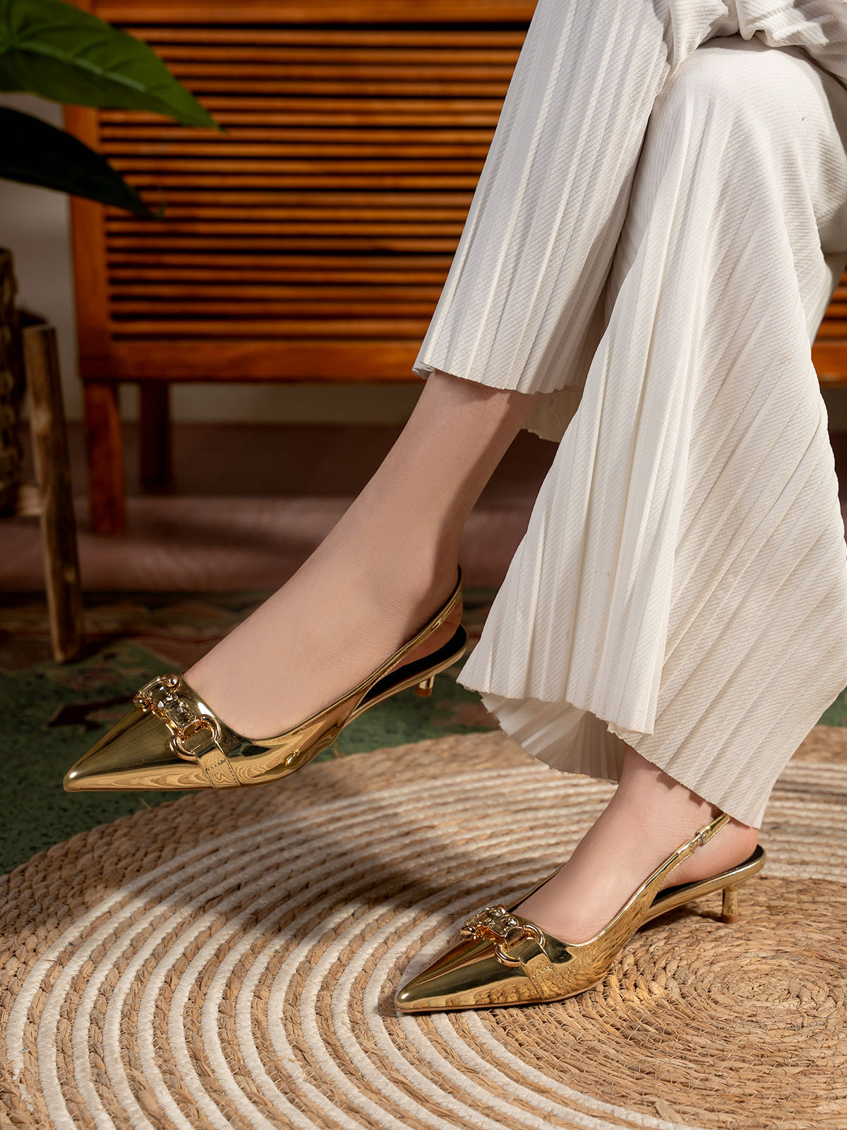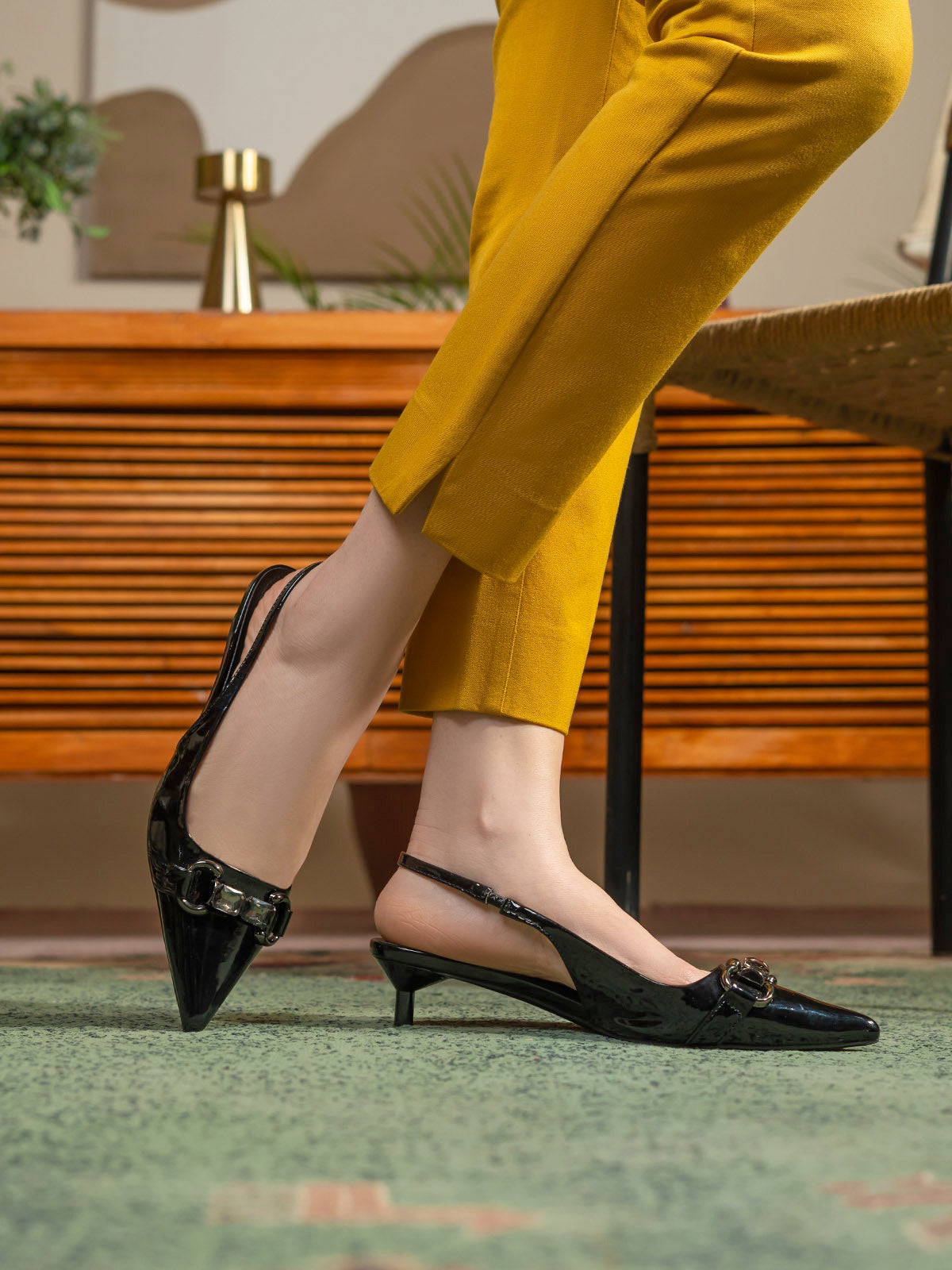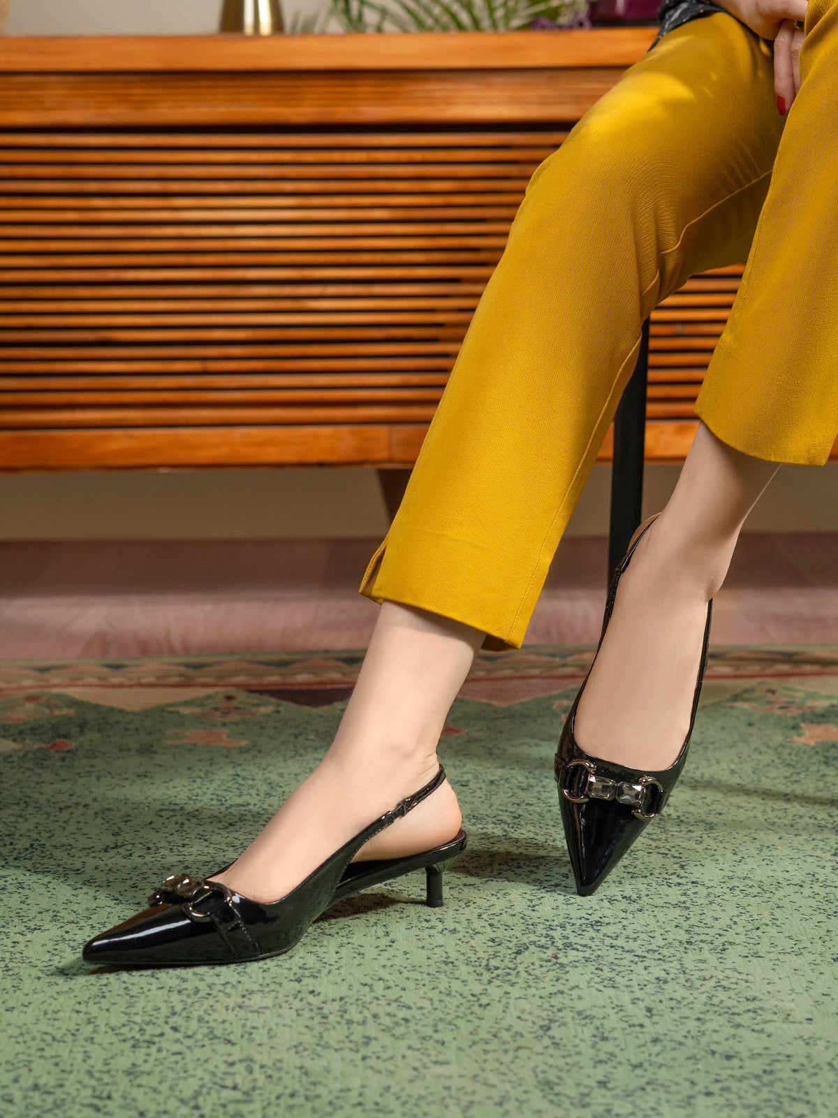 Elevate your style with these women’s slingback fancy low heel sandals, featuring a sleek front buckle for a touch of sophistication. The comfortable low heel and secure slingback strap make them easy to wear all day, while the stylish buckle adds a chic, elegant accent.