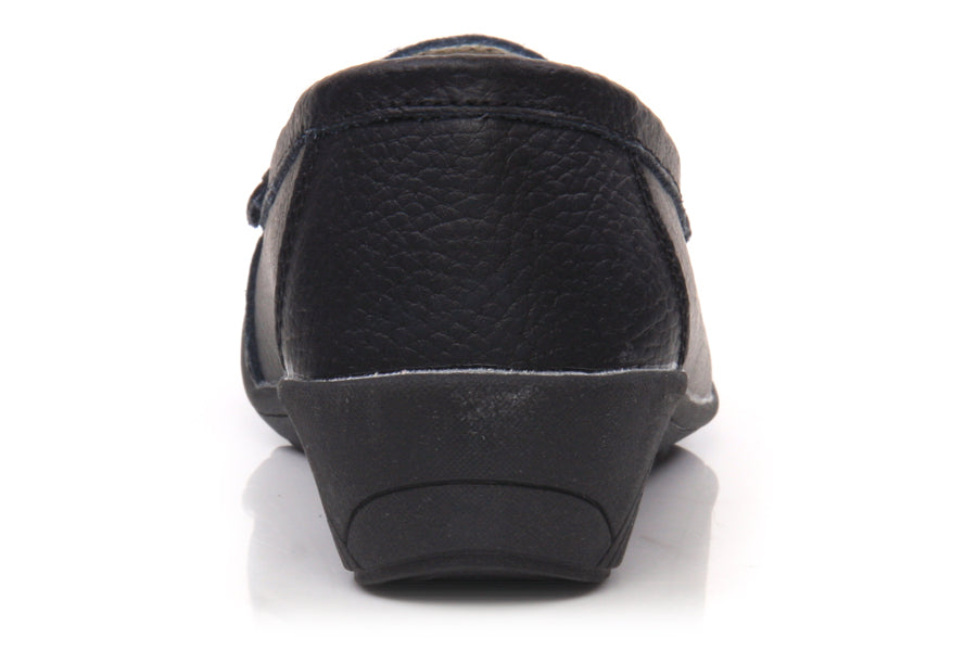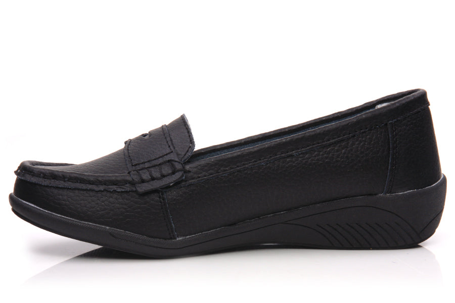 Step out in sheer style with these quality classy moccasin casual flat slipons shoes. Easy slip on style for on-off with comfort comes with stitched detailing and lightly cushioned footbed. Style No: L24716 Colour: Black