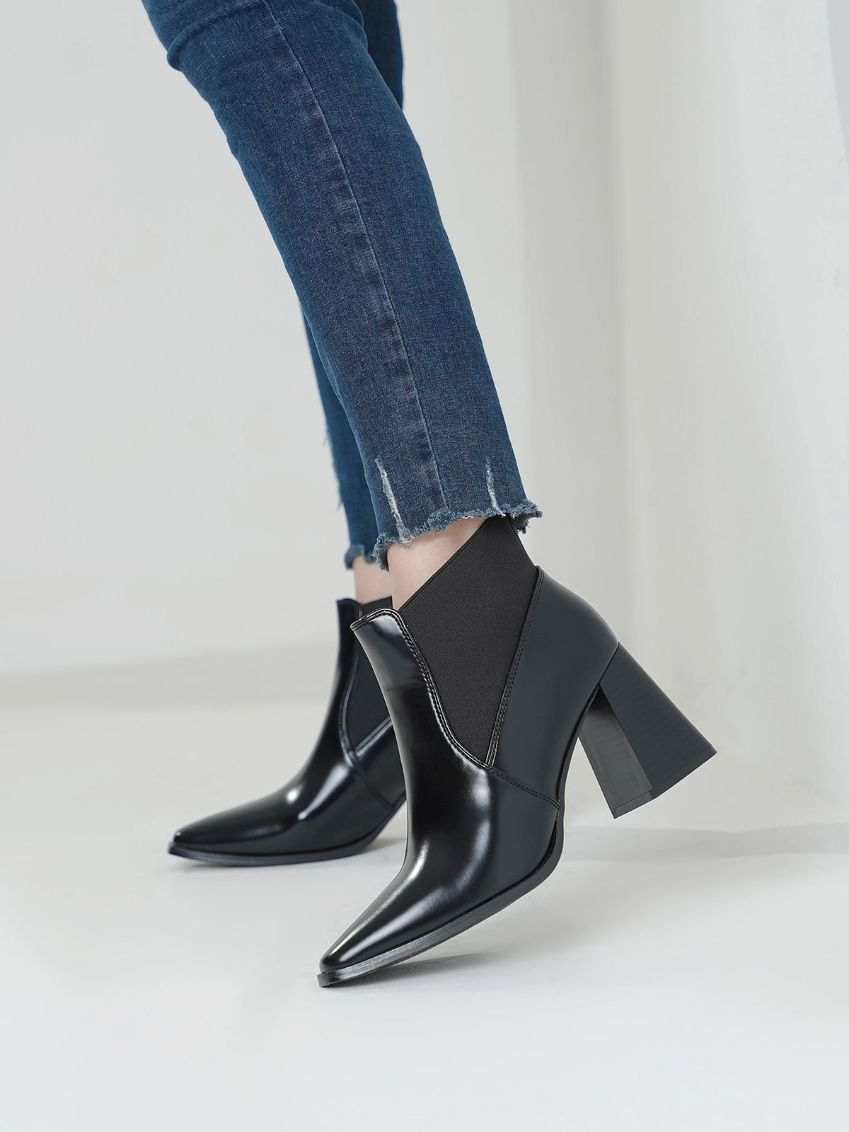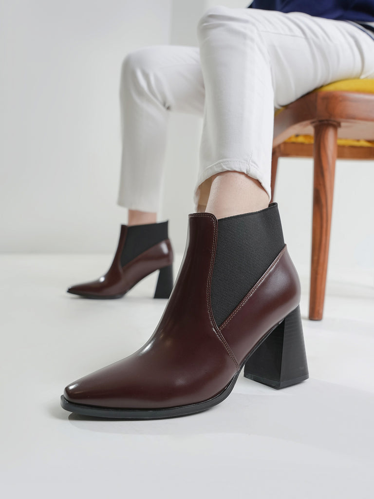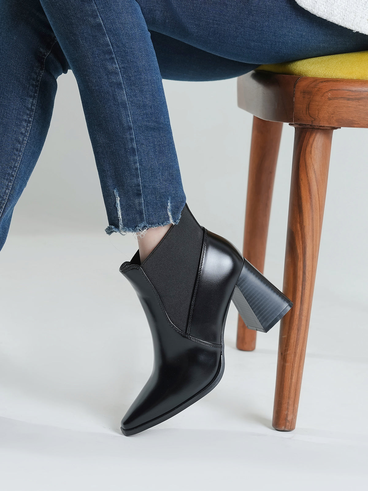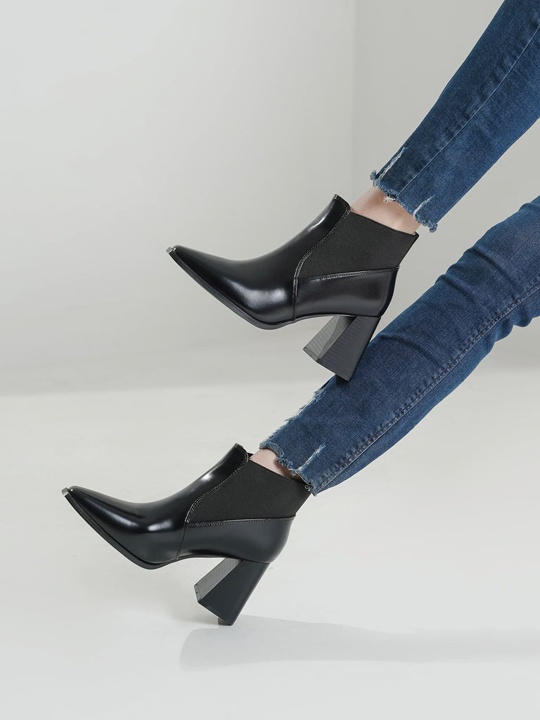 Stay stylish and comfortable with these women's slip-on boots featuring a trendy spool heel. Designed for easy wear, they offer a sleek silhouette with a pointed toe and soft finish. Perfect for adding a touch of elegance to your everyday or evening outfits.
