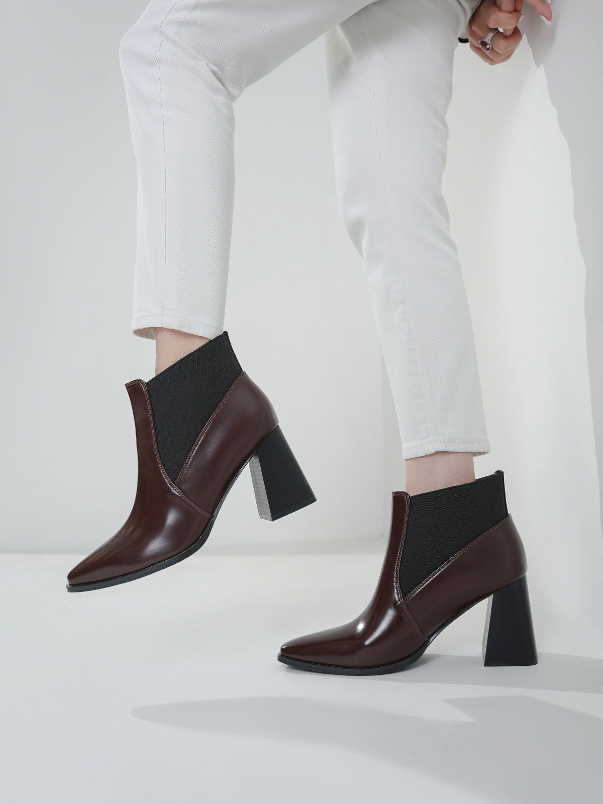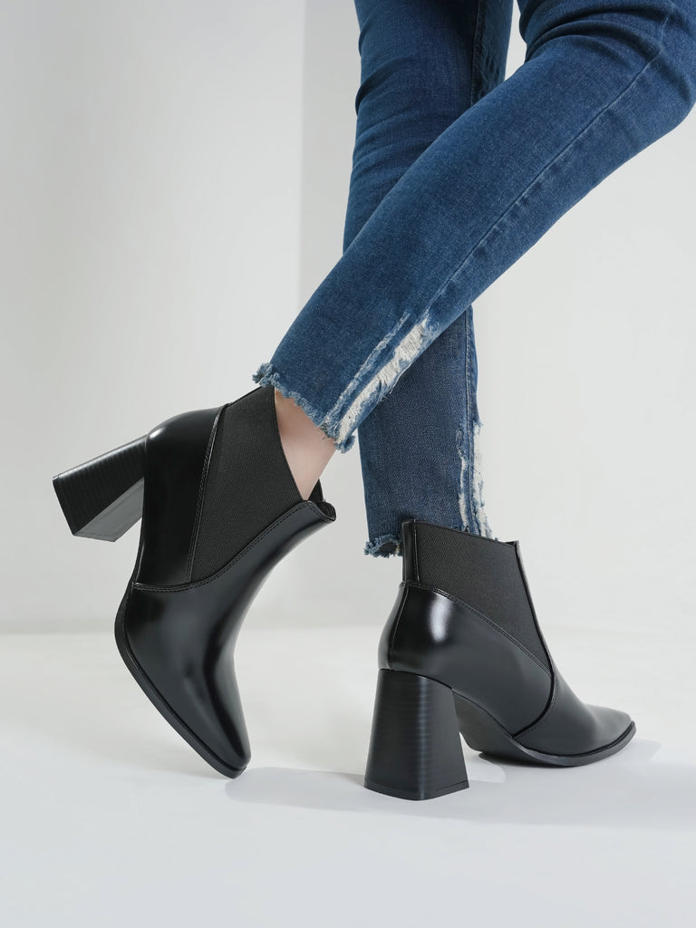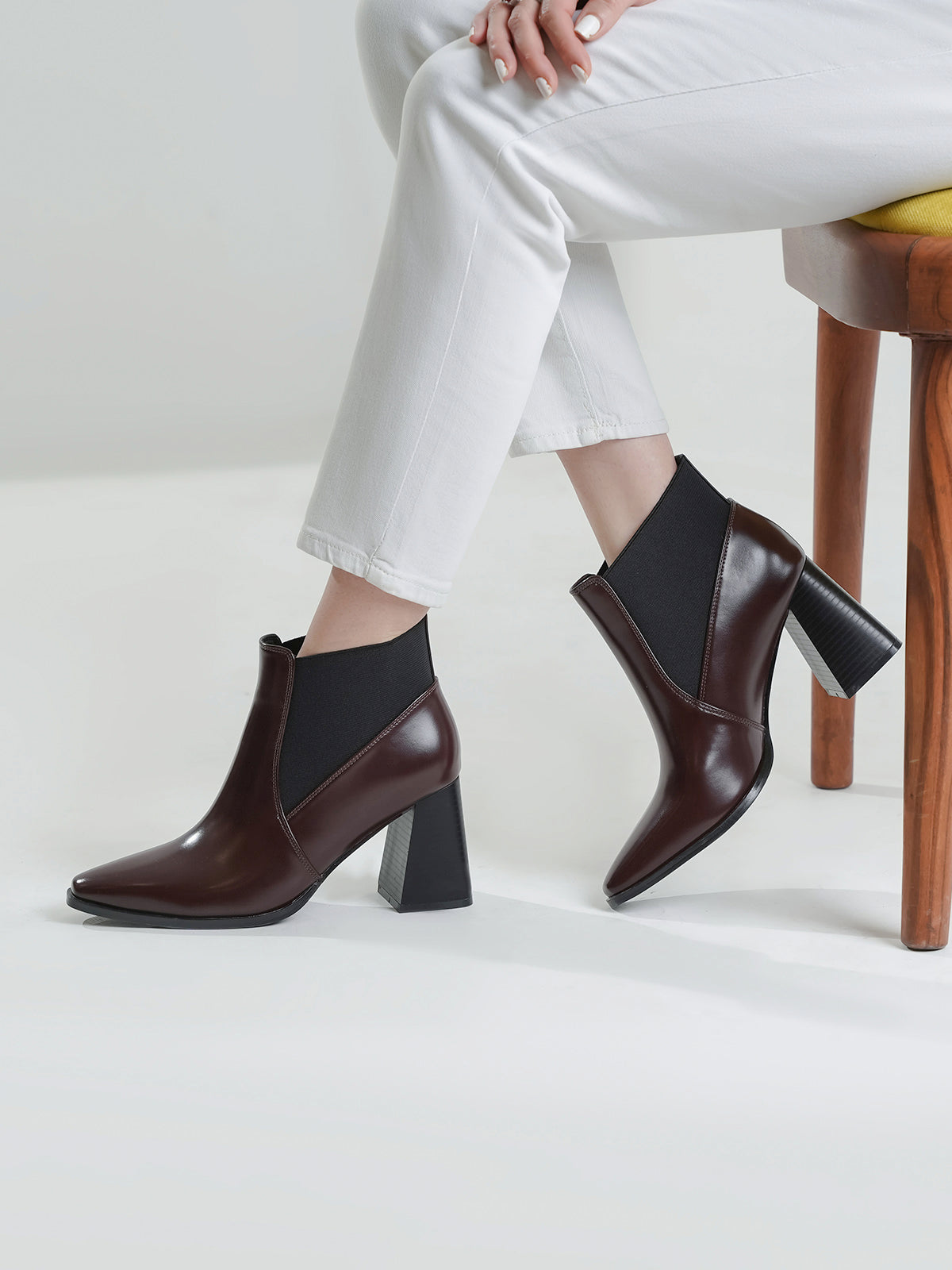 Stay stylish and comfortable with these women's slip-on boots featuring a trendy spool heel. Designed for easy wear, they offer a sleek silhouette with a pointed toe and soft finish. Perfect for adding a touch of elegance to your everyday or evening outfits.