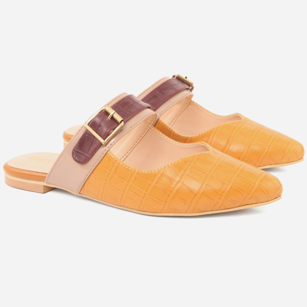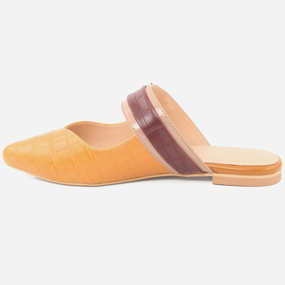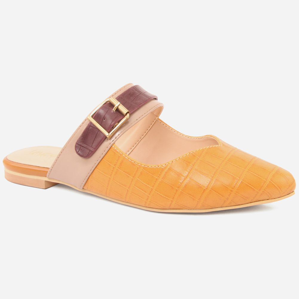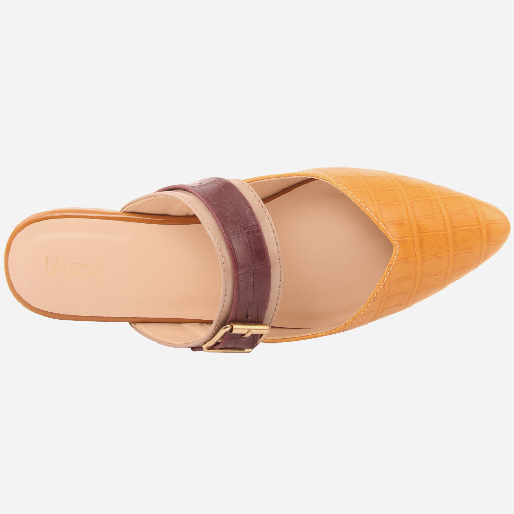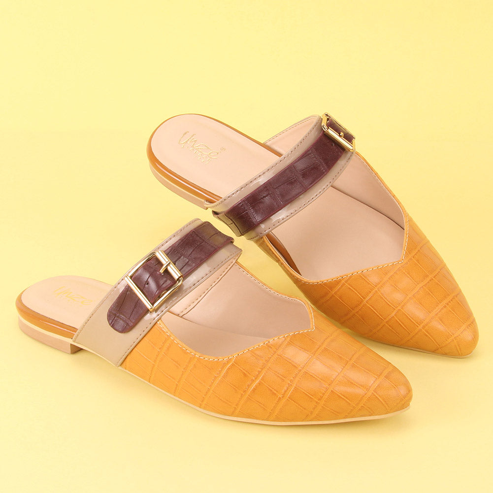 The pointed toe Mules with a flat heel and beautiful strap adds trend-right style to your ensemble, making you look stylish and elegant even on a daily life.