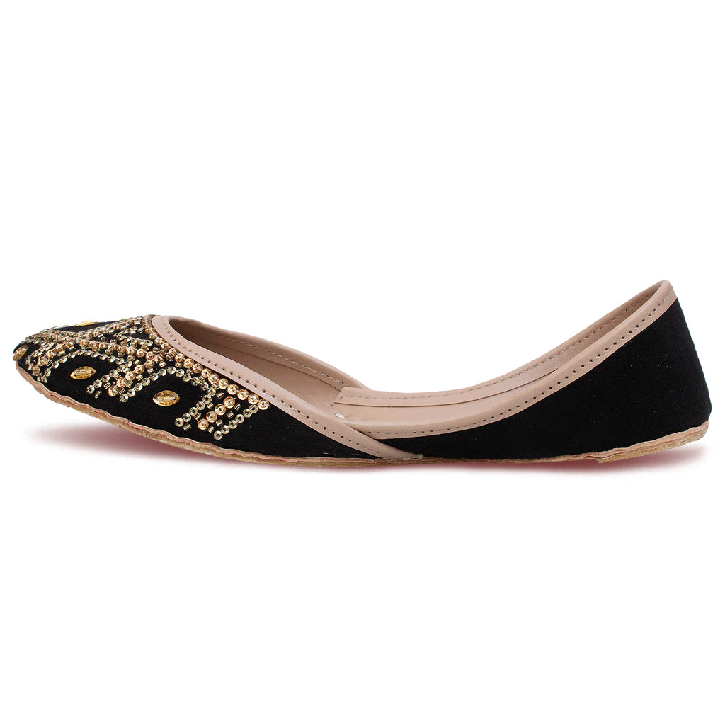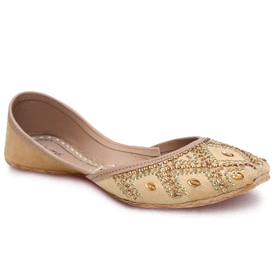 Incorporating a traditional jutti into your ethnic ensemble is an absolute necessity. These leather khussa shoes are exquisitely adorned and boast a remarkable sense of style. Enhance your special occasion attire by donning these fashionable accessories, effortlessly exuding elegance and charm.
