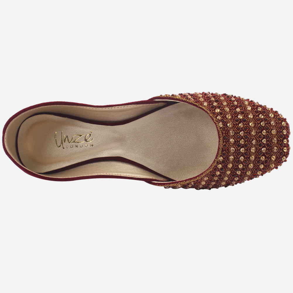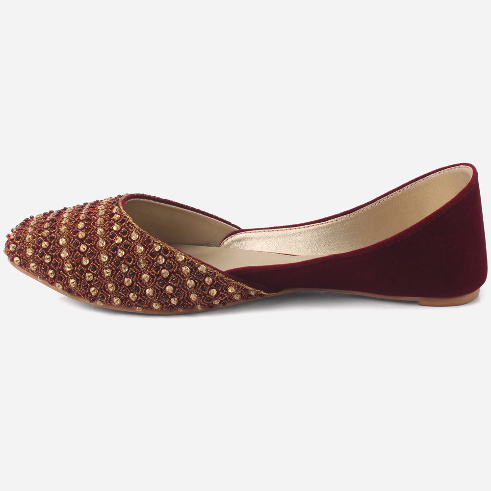 A bit of femininity and firmness, these impudent pumps surely have them both. Simple adorned upper with hand embroidered pattern, Leather sole and upper is well crafted. These chic slip-ons have beautifully designed upper with slightly cut out designed toe. These beautiful handcrafted shoes are true masterpiece with its delicate design and feel. Easy slip-on construction with lightly cushioned man-made footbed for ongoing soothes and underfoot support. Left or right ___ you can wear them both ways.